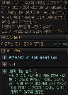 스킬공격력을 무려 60% 이상 올려주는 스킬이니 반드시 찍으시고 레이드나 던전 입장 시 제일 먼저 켜주세요.