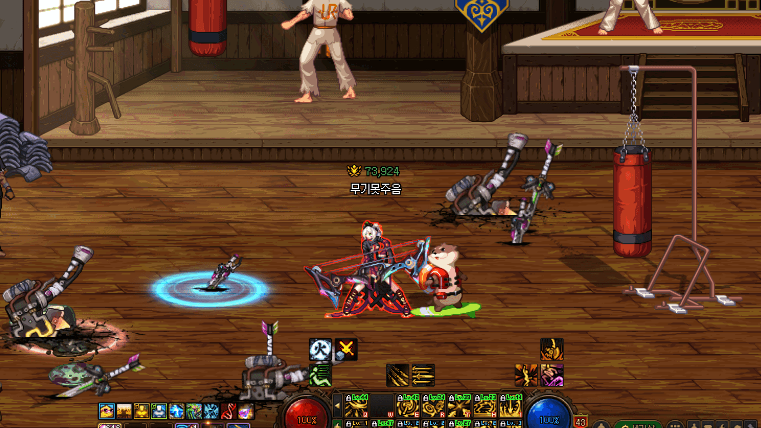 멀리 떨어진 무기 더미에 소팅을 쓰고, 씨/하플레쉬 등으로 빠르게 적에게 접근하면 분리수거 딜을 모두 넣을 수 있어요