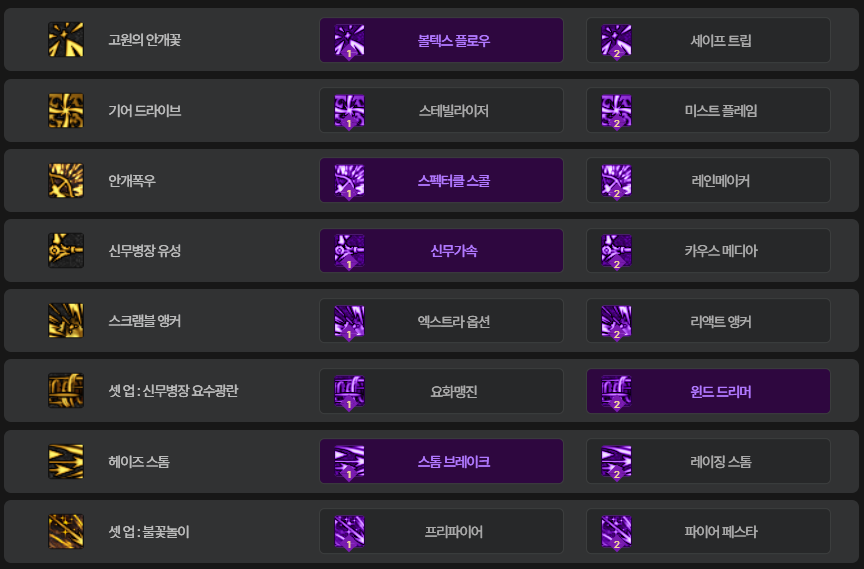 - [미스트 플레임] : 지속딜로 바뀌게 되어서, 채용하지 않습니다.