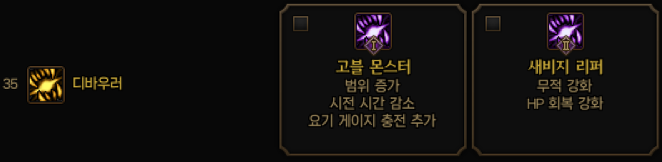 디바우러 VP의 경우 스킬을 채용을 했다면