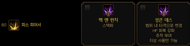 1. 피스 피어서와 크루얼 슬러터VP2를 스킬 강화 쿨감에 두고 발골과 묶을 것