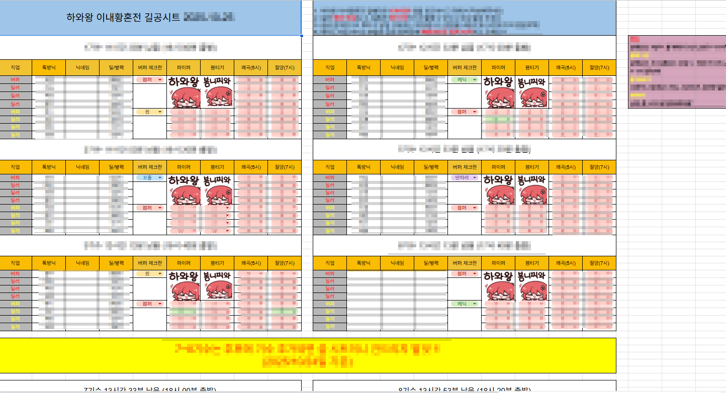 ▲길드 시트로 관리되는 체계적인 길공 시스템