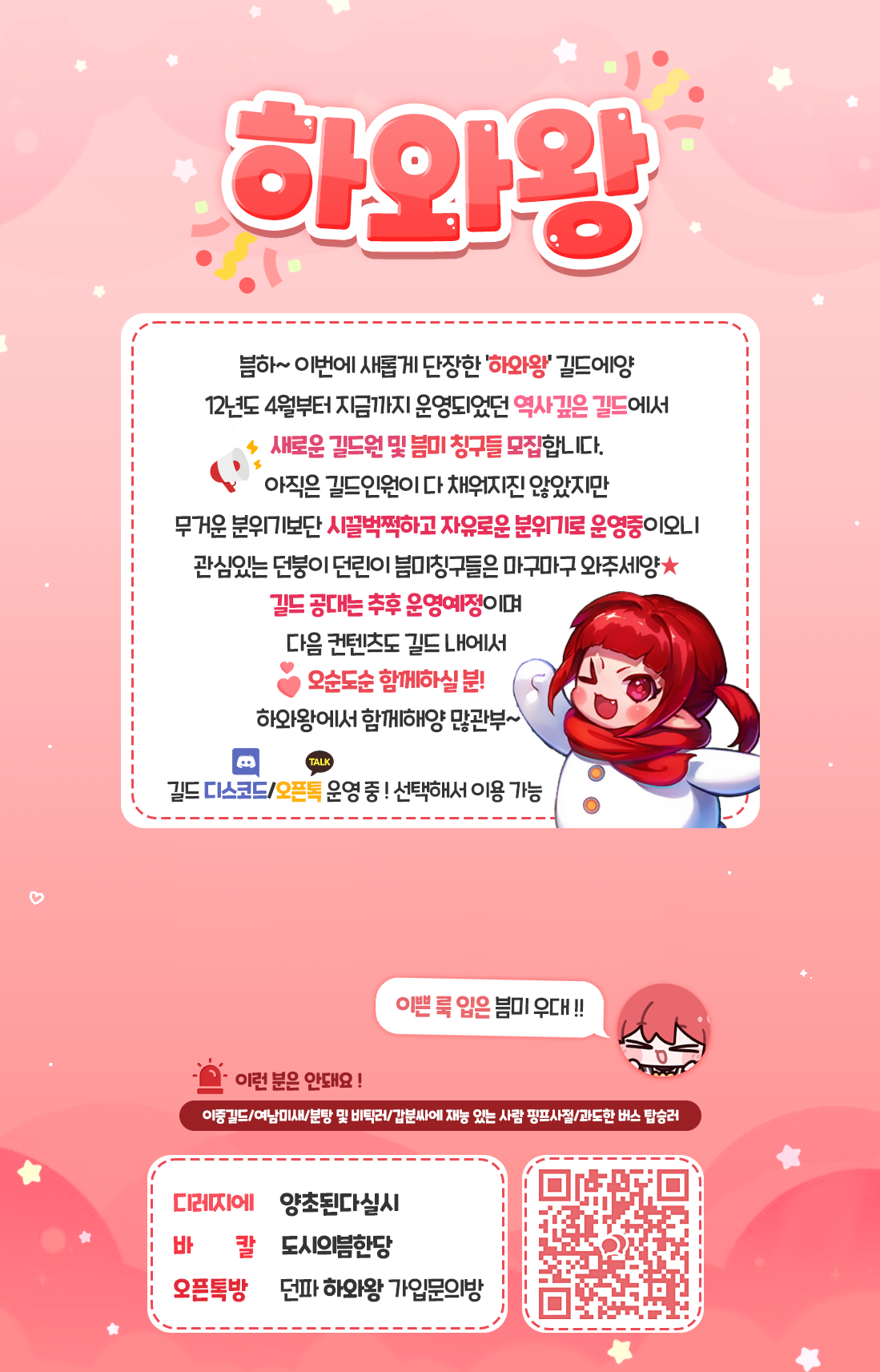 ★가입불가 : 이중길드/여미새,남미새/분탕 및 비틱러/갑분싸에 재능있는사람/핑거 프린세스/과도한 버스탑승러/철새