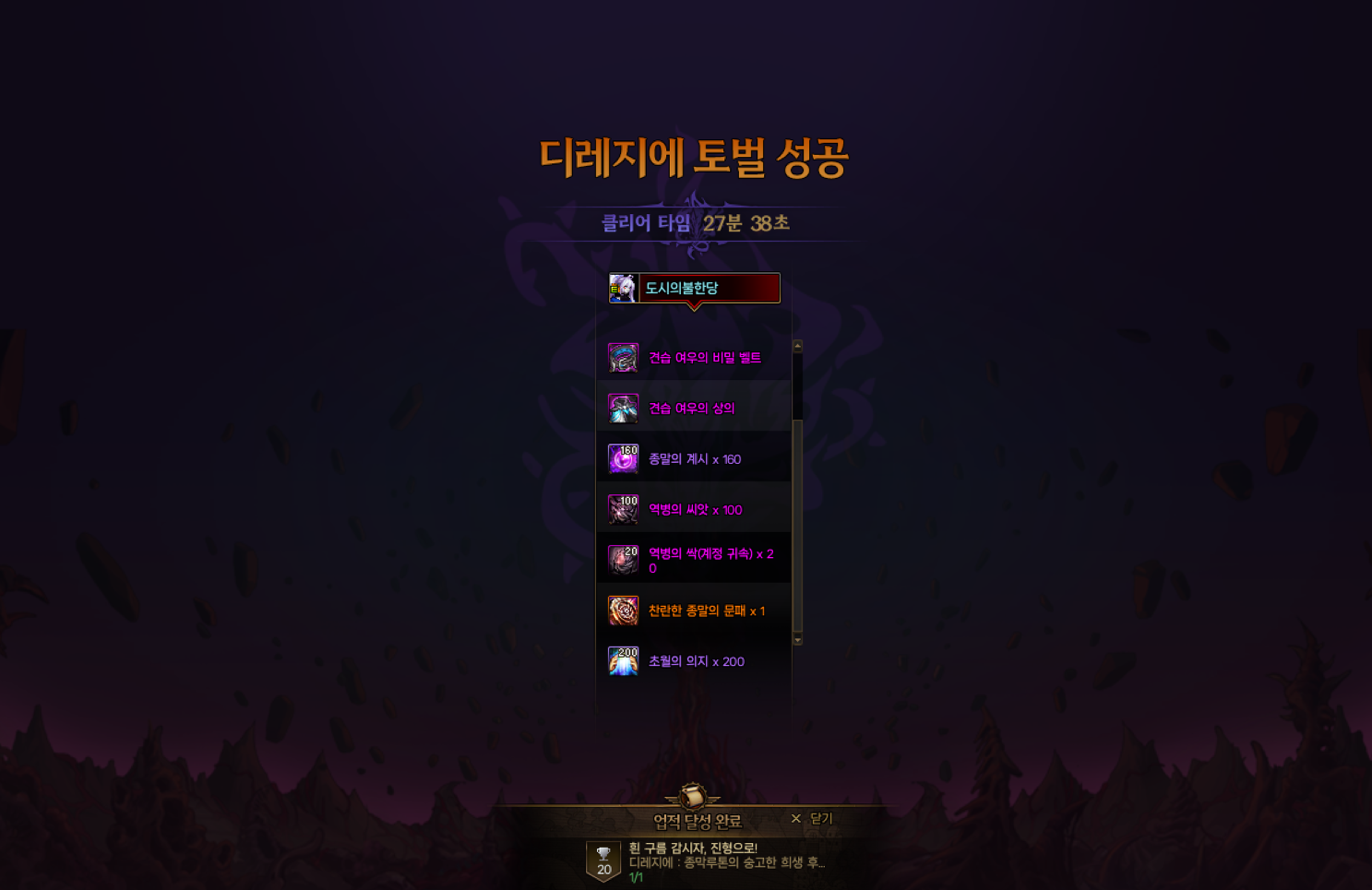 2025-11-26 퍼섭 디레지에 클리어 스샷입니다!