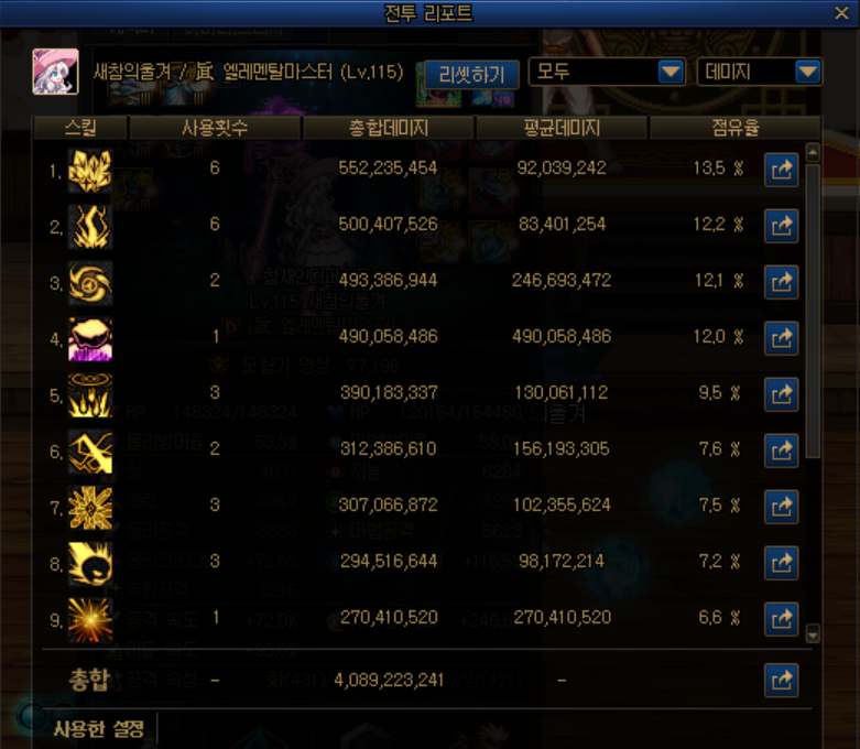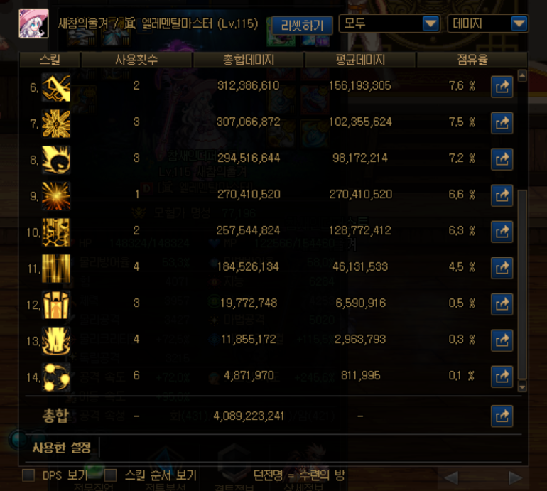 물론 풀 히트를 해야 저 정도의 데미지가 나오는 것이기에