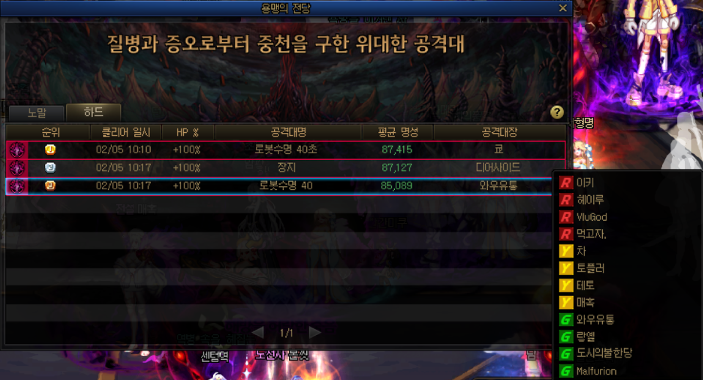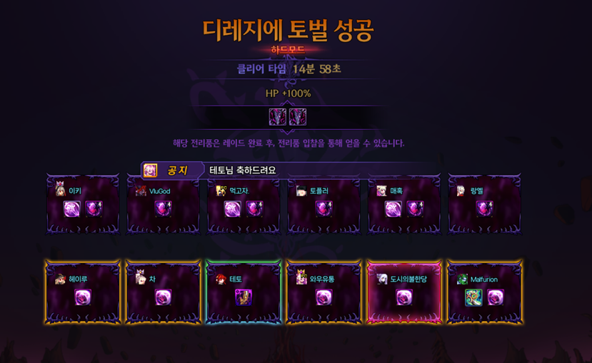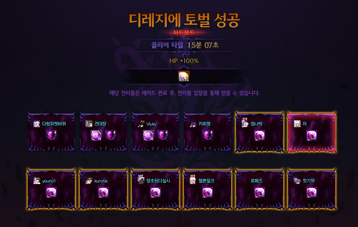 악연 2배율 하와왕 일부 길드원 클리어 스샷입니다!