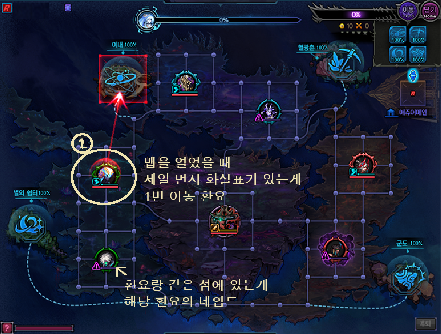 맵을 열었을 때 빠르게 1번 환요가 누군지 파악했으면