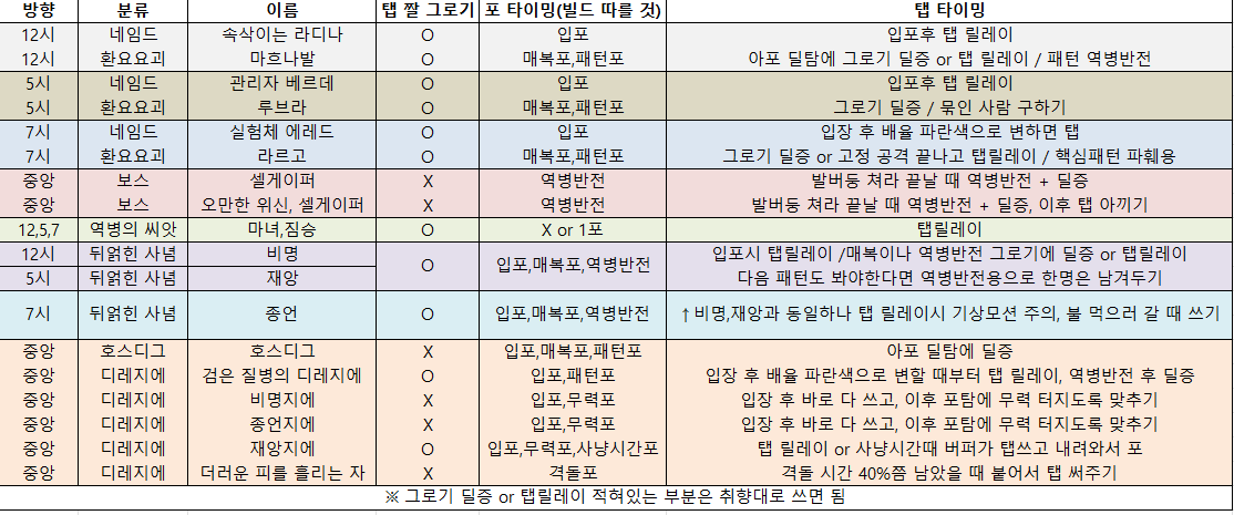 공지 [상시이벤트] 12월 묻고답하기 이벤트 안내 (11월 답변왕 발표) (10) 던전앤파이터 2025.12.11 1,294 0 공지 [수상자 발표] [월드보스] 정보/공략 작성 이벤트 수상자 안내 던전앤파이터 2025.12.04 2,525 0 공지 [이벤트] [디레지에] 레이드 정보/공략 작성 이벤트 던전앤파이터 2025.11.26 6,657 0 공지 2025 던파페스티벌 20th Anniversary 발표 요약 던전앤파이터 2025.11.22 81,831 22 공지 장비 / 플레이 / 뉴비 정보 모음 (218) 던전앤파이터 2025.04.24 999,999+ 115 공지 던전 공략 모음 (디레지에 레이드) (176) 던전앤파이터 2025.11.26 999,999+ 138 공지 전직 별 가이드 모음 (25/11/24 갱신) (743) 던전앤파이터 2025.11.24 999,999+ 389 팁 [공통] 디레지에 레이드 알아두면 좋은 내용들(움짤 포함) (2) 마도덮밥 17:20 354 1 팁 [공통] [디레지에]싱글 기준 네임드 및 보스 패턴 공략 영상(25.12.04 속삭이는 라디나 패턴 추가) (5) 데스빌리안 12:45 4,555 7 팁 [공통] 디레는 오더가 80프로먹고드가는듯 (2) 나와라에픽빔 11:33 390 0 팁 [공통] 디레지에 저스펙 공대 빌드 상세공략 (180~210억) (타임라인o) (12/13 최신) (92) 힐조 11:09 13,060 49 팁 [공통] 디레지에 레이드 탭타이밍 & 빌드 정리표 (12/13일자 기준 최신) (12) 힐조 10:02 1,456 11 팁 [인챈트리스] 인챈트리스 스킬트리,VP,스킬강화 그리고 운용가이드와 매커니즘 정리 (2025.12최신) (2) 뚜룹이헤카테 06:50 773 3 팁 [엘레멘탈 마스터] 던페 점핑권 캐릭터 고민되신다면 엘레멘탈마스터 vp,스킬트리,스킬강화 공략 가이드 (5) 뚜룹이헤카테 01:52 3,413 10 팁 [공통] 디레지에 레이드 패턴 공략 (30) Sanso 2025.12.13 5,970 36 팁 [공통] [디레지에] 디레지에 핵심 보상,업그레이드소요시간 등 요약정리 (19) 뚜룹이헤카테 2025.12.13 8,418 16 팁 [여레인저] 여레인저의 스킬, 세팅, 운영 (66) 엘수르 2025.12.13 51,956 36 팁 [공통] 버프강화 진루주 2025.12.13 216 0 팁 [공통] 디레지에 220/600 벞교 빌드 다두 (2) 다시다뎌 2025.12.13 581 0 팁 [공통] (영상) 170/570도 가능한 디레지에 빌드 공략!(넉넉하게 스펙 맞춰서 가세요) 관훈 2025.12.13 391 4 팁 [공통] 안개 융화 경험치표 (~20레벨) (18) 알레프아크 2025.12.13 11,779 10 팁 [공통] 디레지에 레이드 핵심 재화 정리 (6) 겨울동화 2025.12.13 2,110 5 팁 [공통] 비밀상점 정리 (2) 츄르모시 2025.12.13 740 4 팁 [여넨마스터] 고수님들 여기서 더 어떻게 세팅 성장해야 할지 모르겠어서 알려주세요 ㅠㅠ (6) 이치로 2025.12.12 320 0 팁 [남스트라이커] (12/12 수정) 패황 핵심만 적어놓은 가이드 (VP/스킬/콤보/사이클/영상) (87) 패는 2025.12.12 152,398 41 팁 [인파이터] 세렌단을 고민하는 모든 인파에게 바칩니다. (6) IZIL 2025.12.12 437 0 팁 [공통] [초간단] 디레지에 공대장 공략, 빌드 +추가팁 (45) 곽묵직 2025.12.12 16,063 21