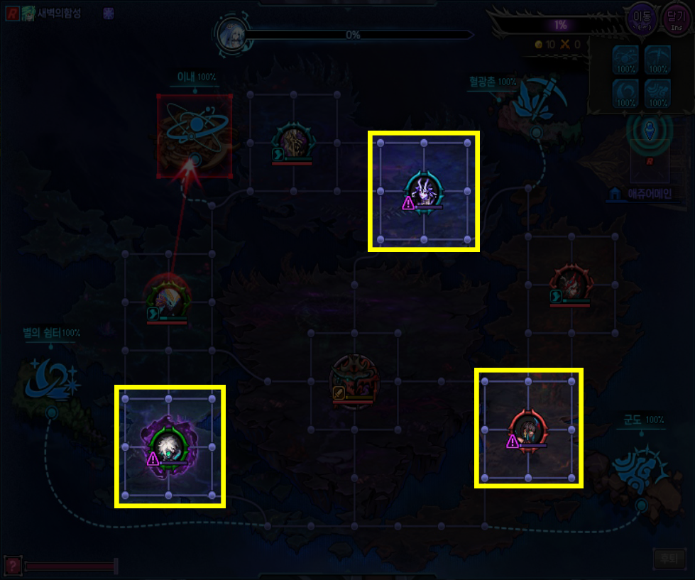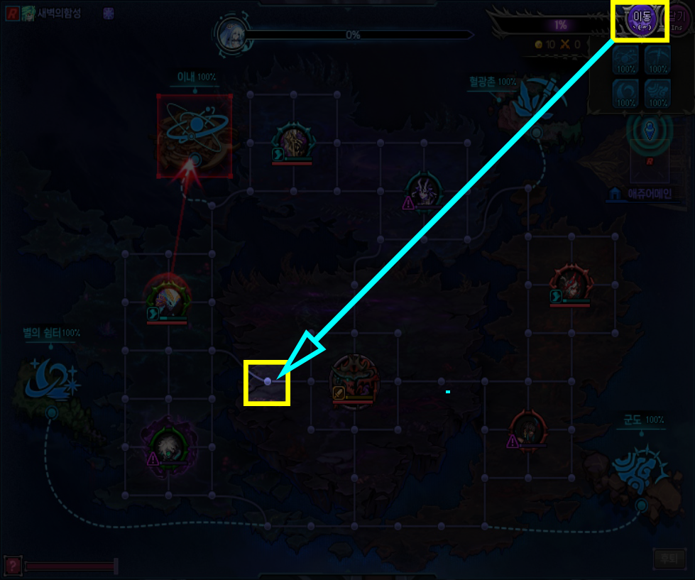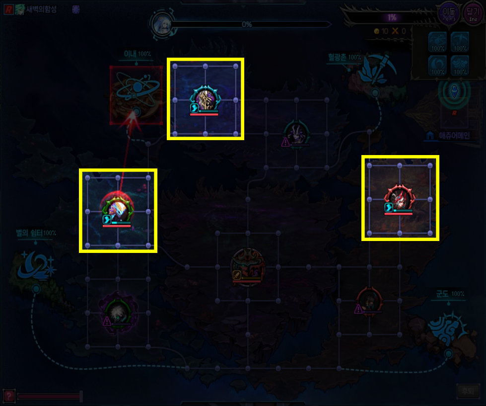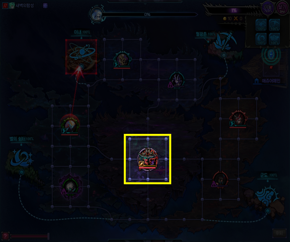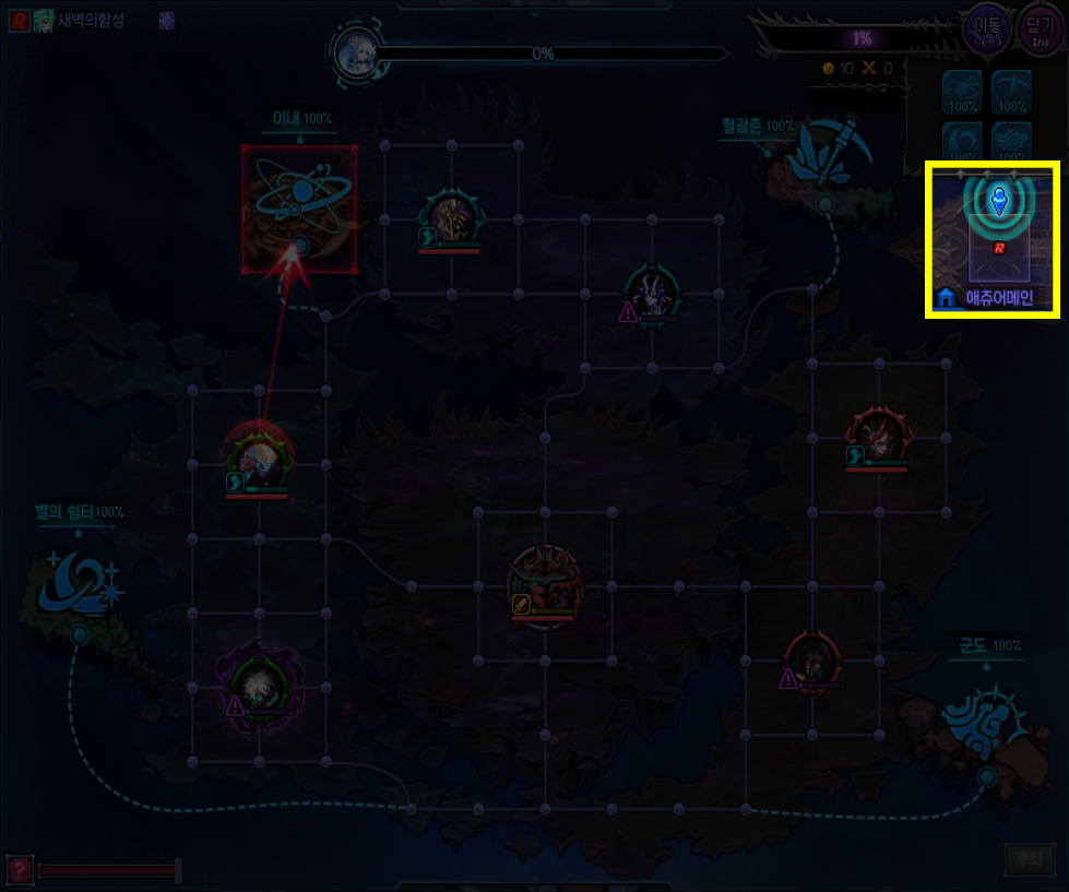 본진 개념의 장소는 상황판 우측 상단의 에쥬어 메인입니다. 레이드 시작시, 전투중 후퇴시 이곳으로 오게 됩니다.