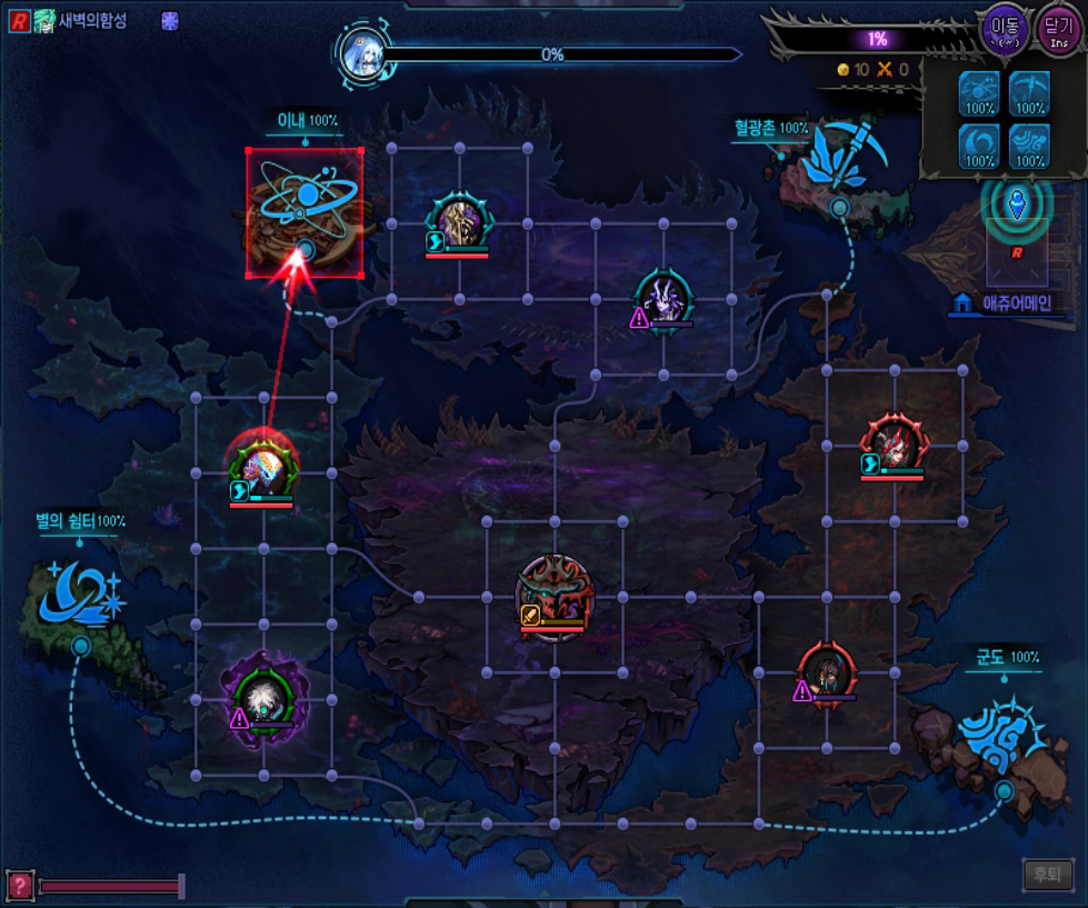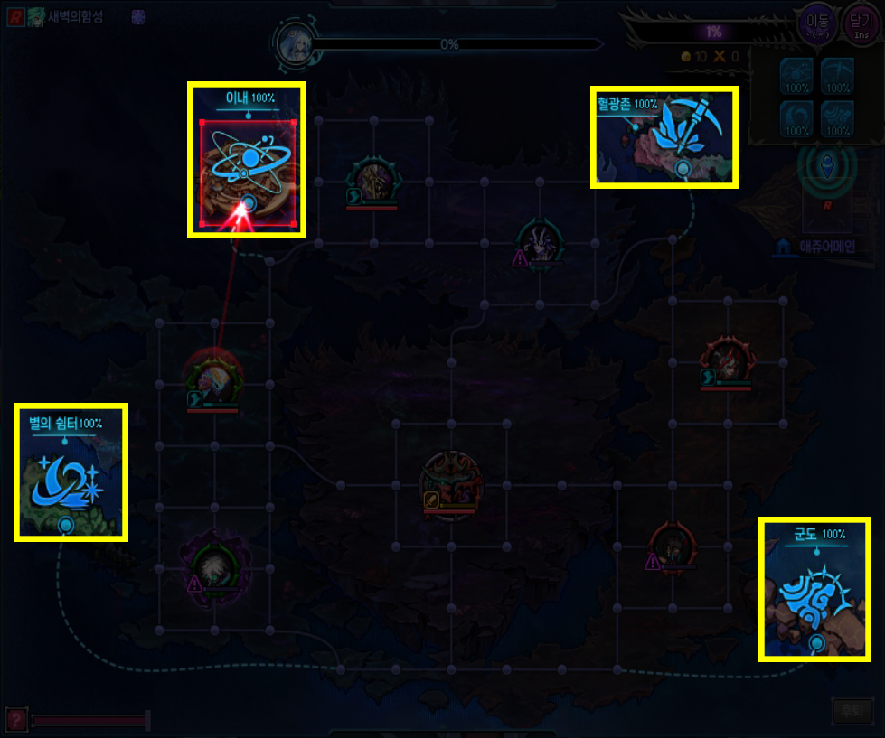 거점 : 이내, 혈광촌, 별의 쉼터, 군도