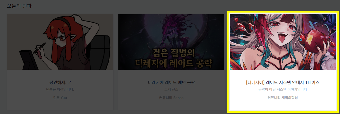 다들 안녕하세요. 디레지에 서버에 서식하는 새벽의함성 입니다.