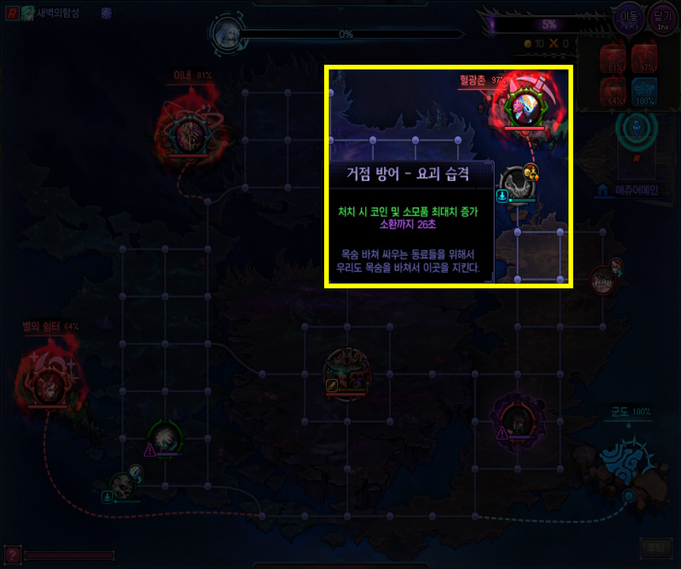 ○ 환요오괴가 거점 습격시, 생성된 유도잡몹 처리하여 거점 밖으로 유도