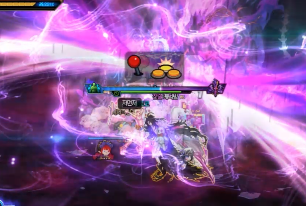 위 격돌(힘겨루기) 패턴은 파티원 "한 명"이 탭을 눌러줘서 2명이 함께 키를 연타해야 합니다