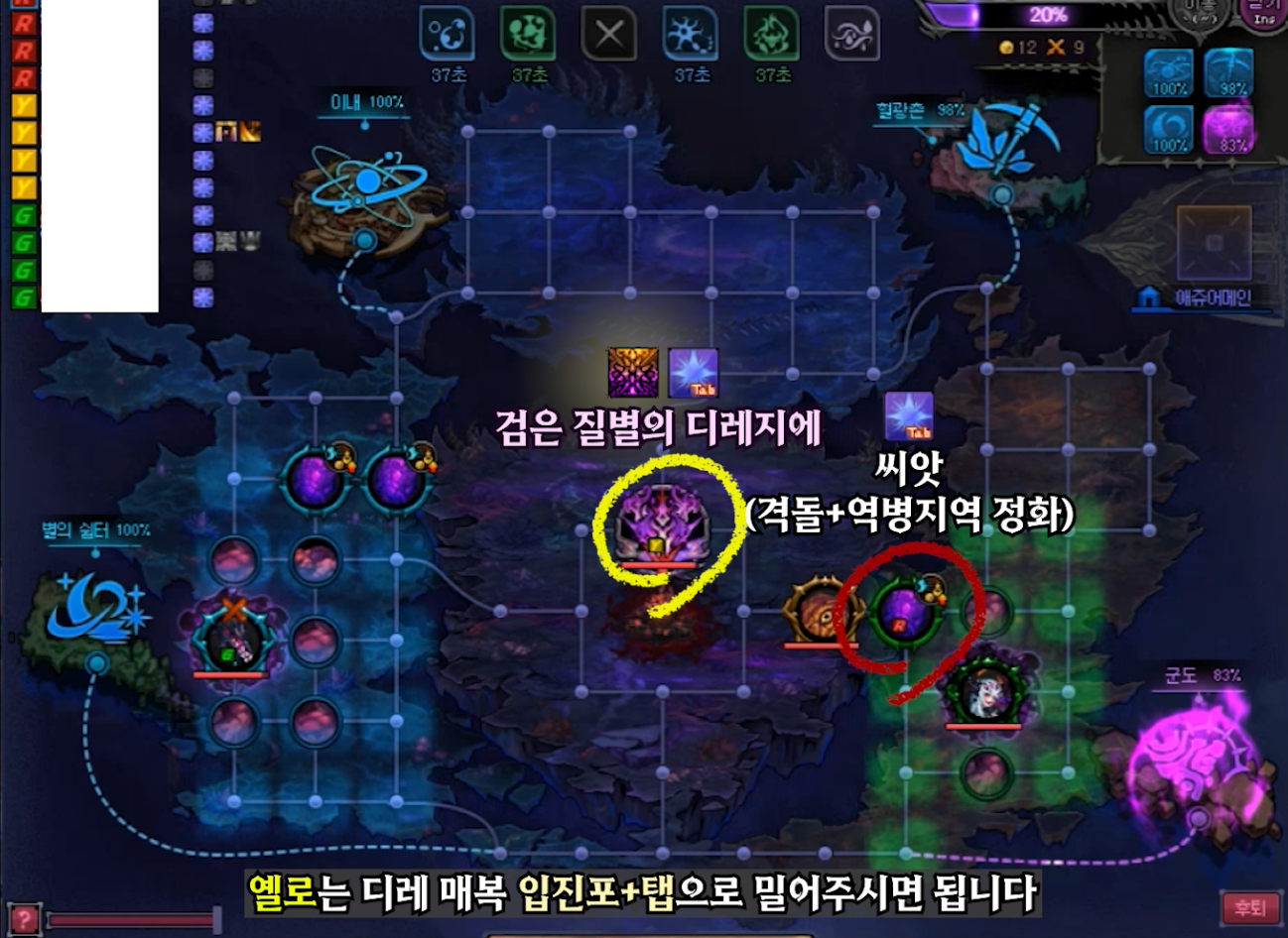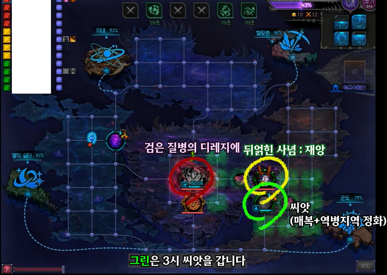 만약 그린이 12시 비명 딜탐을 열어서 딜하고 있다면, 씨앗 클대기를 하시면 됩니다