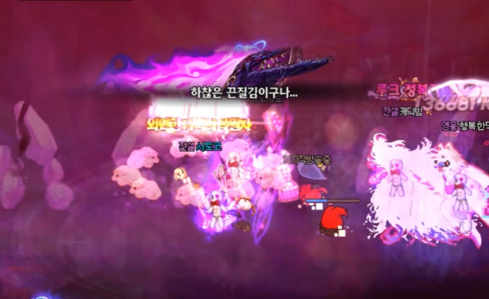 상황 : 레드는 강화몹을 정리한 상태, 옐, 그린은 마을 침공중인 환요오괴를 잡는중..