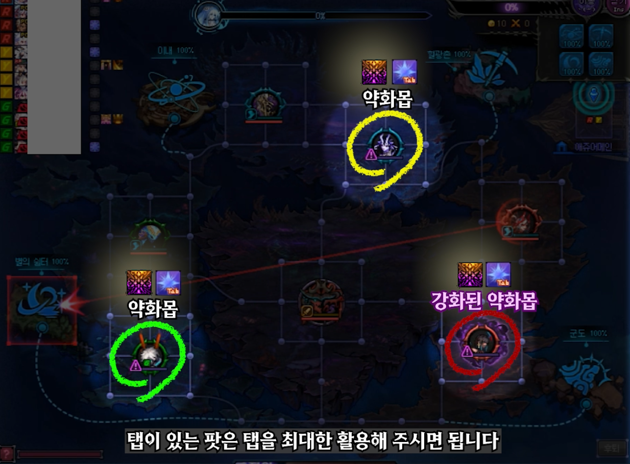 강화몹은 탭 있는 팟이 입장하는 것이 좋습니다