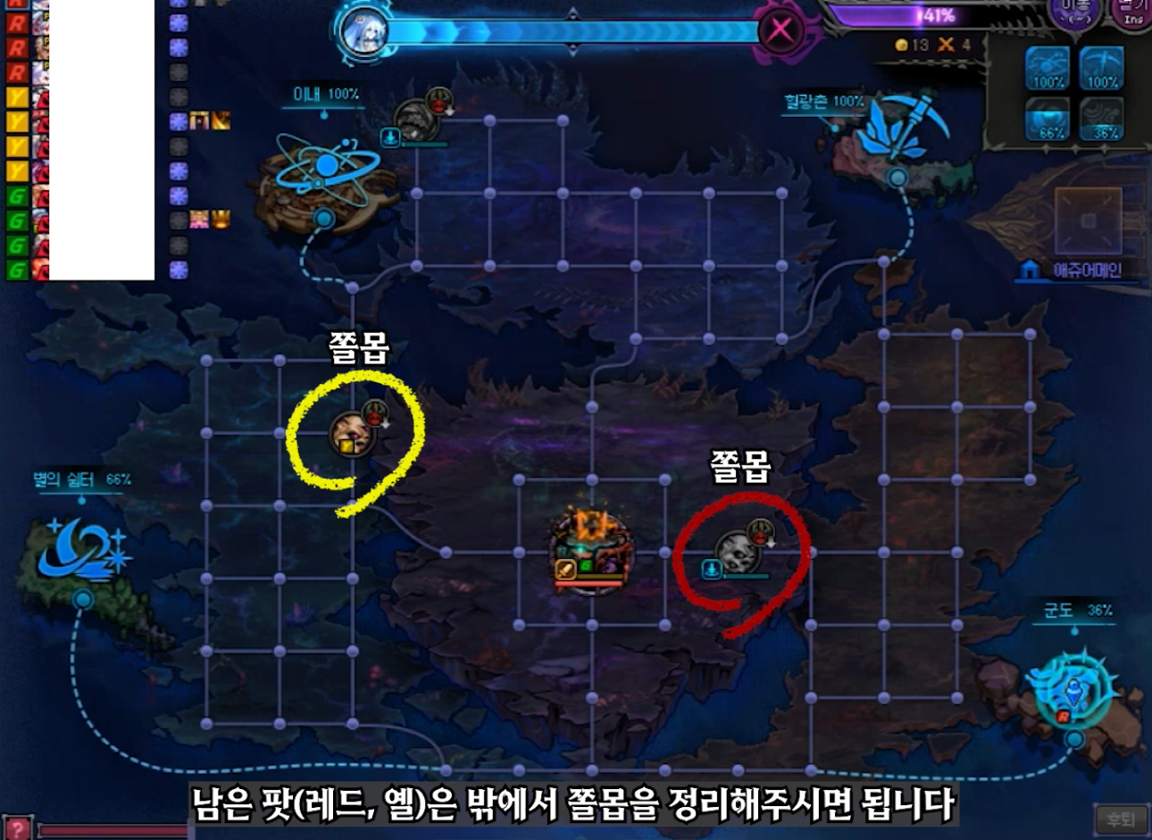 옐로는 밖에서 전차 or 쫄몹을 정리해주시면 됩니다