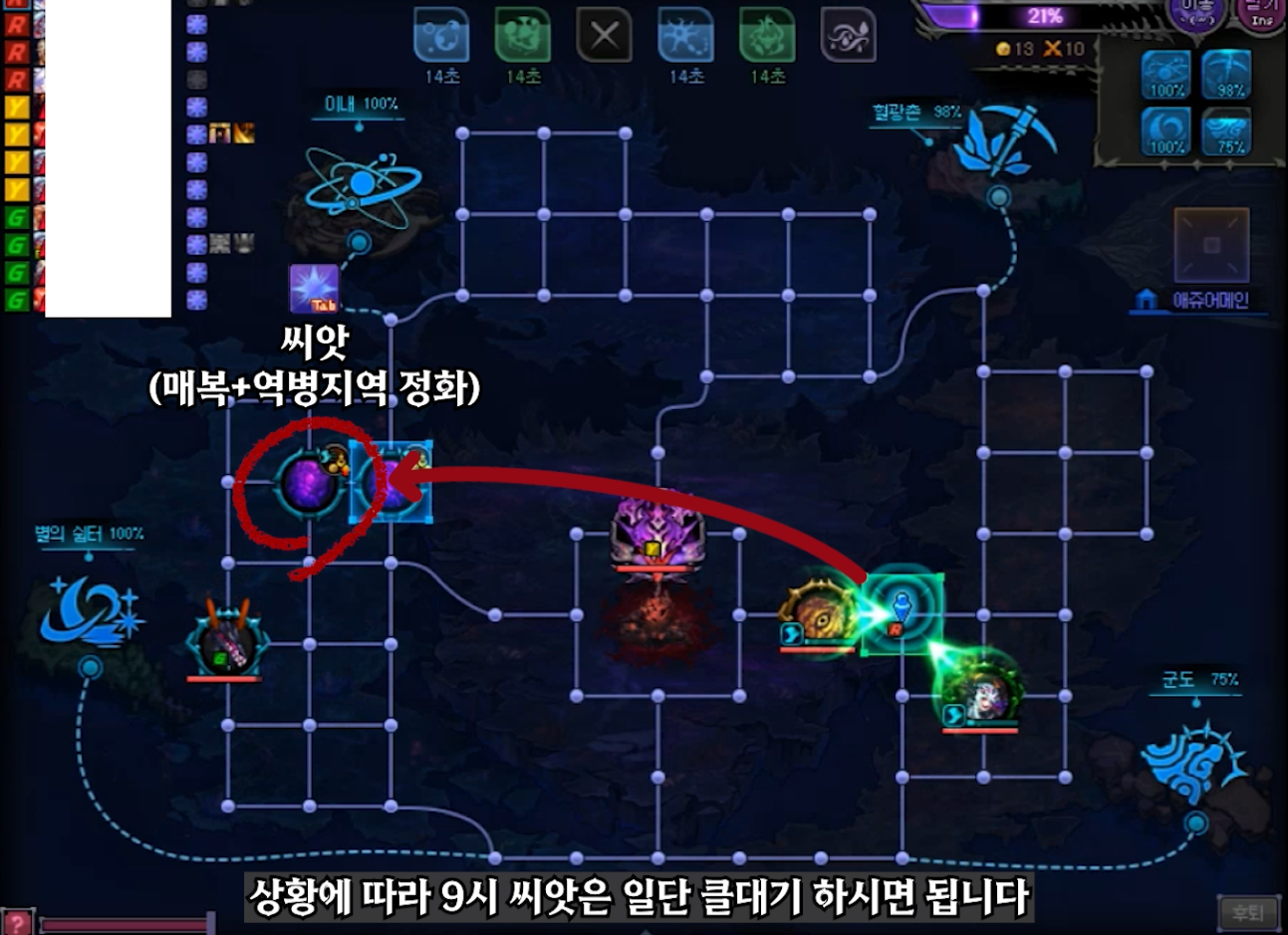 3시 씨앗의 경우, 무궁화 파훼딜 이후 확인 후 씨앗 밀고 매복대기 하시면 됩니다