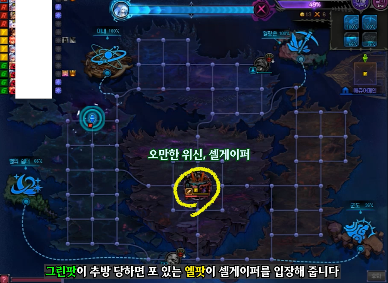 상황 : 그린팟 셀게이퍼 피통 60퍼까지 만들고 추방, 옐로 셀게이퍼 교대