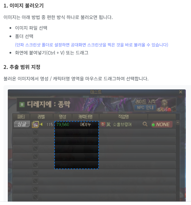 [공통] 던파 플랜디 공대원 검색(이미지 텍스트 추출) 기능 추가되었습니다! (1)