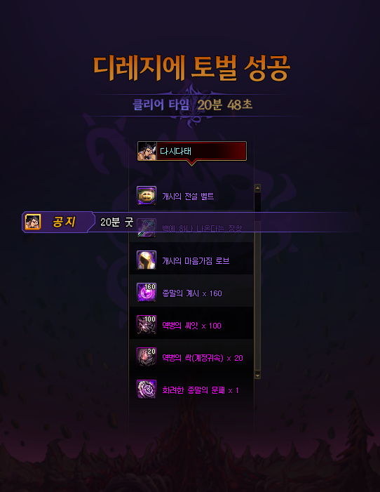 레드 : 종언사념 마무리 씨앗2개이상이면 다른파티가 씨앗격돌로 마무리