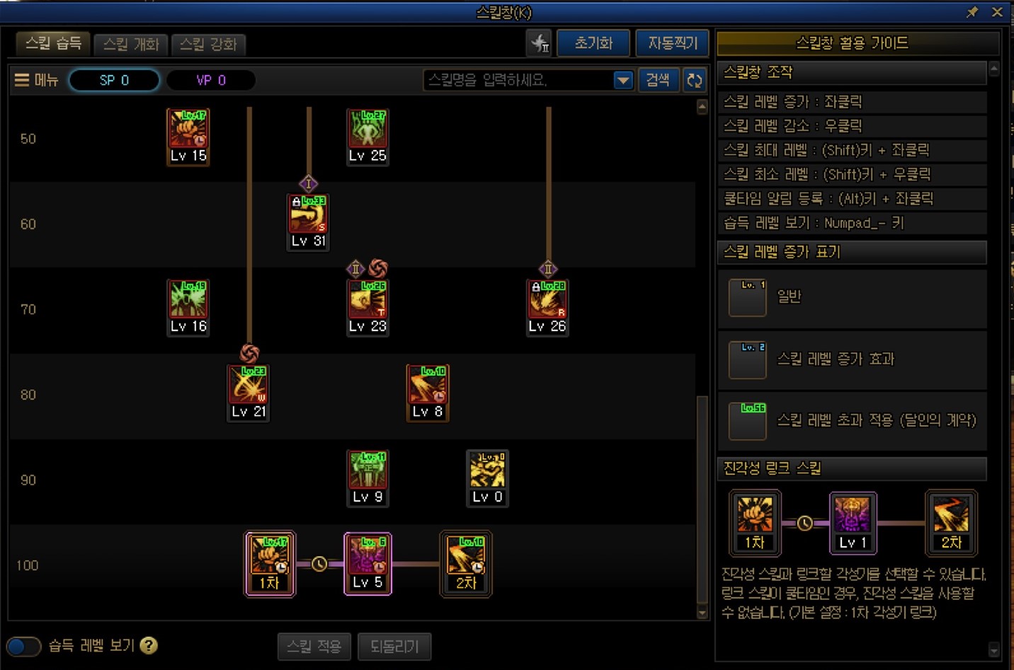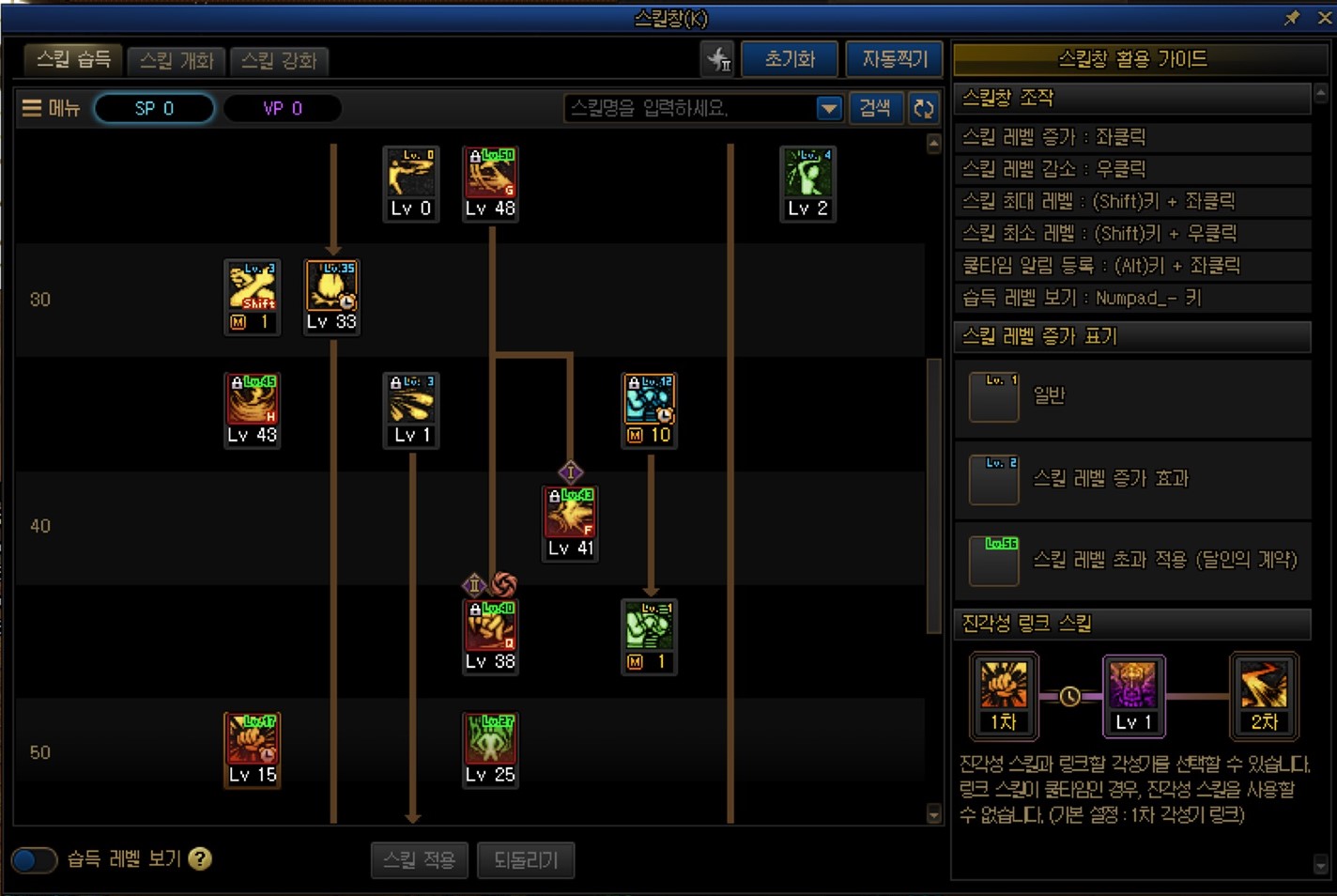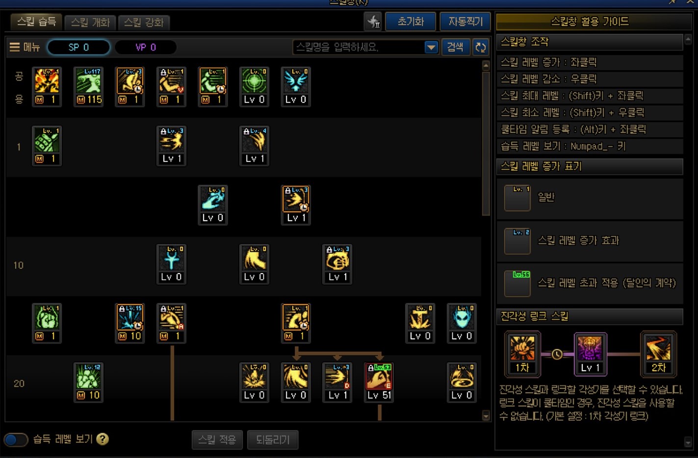 하지만 중요한건 저 마지막줄 모든 스킬 초기화가 아닌, 1번과 2번 줄에 있는