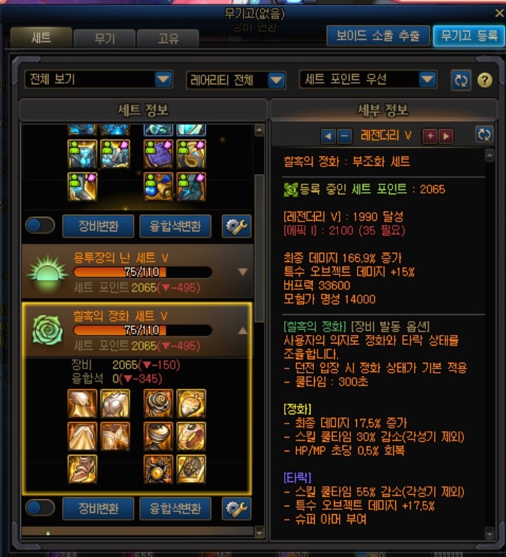 정화는 0 태초이긴 하나, 융합석 제외 장비 포인트로는