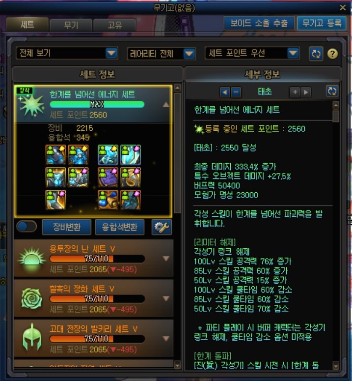 현재 베누스, 나벨 융합석으로 과충전으로 태초 세트 포인트 달성했고요.