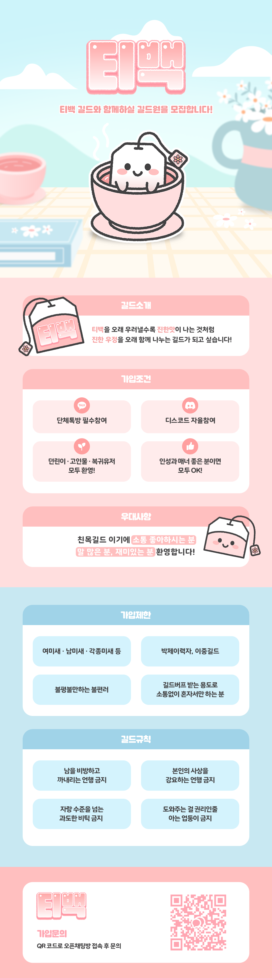 [공통] 신규친목길드 티백에서 길드원 모집합니다 ★☆단톡/디코/뉴비복귀환영☆★