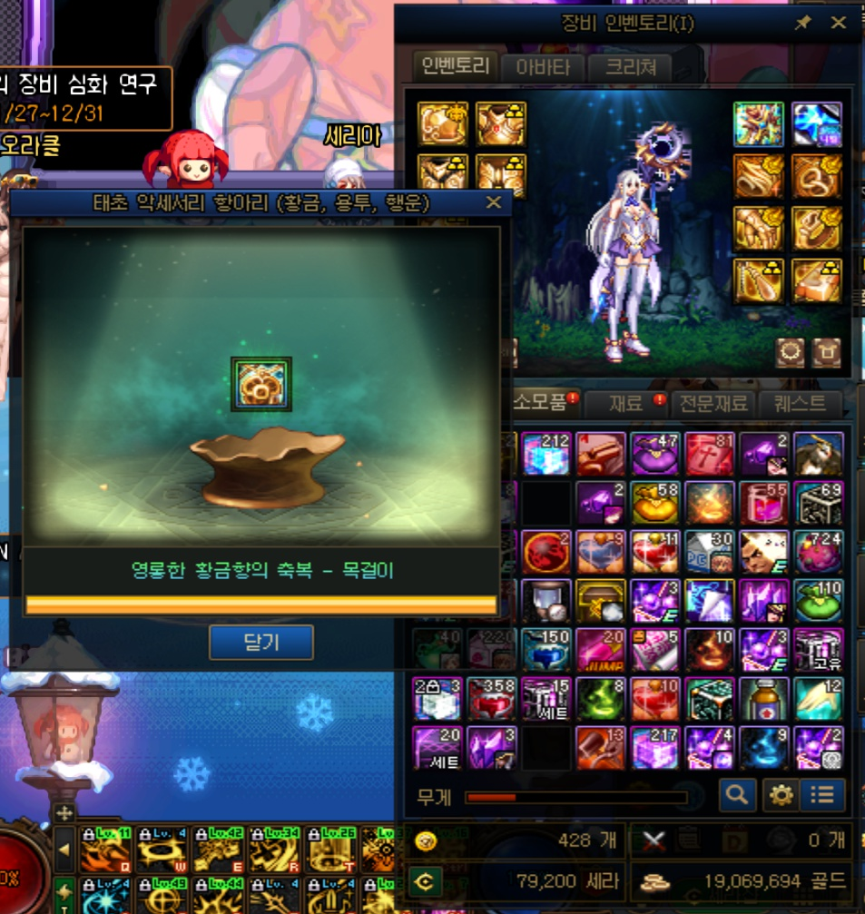 의문의 초대장으로 로그 용투 남은 1부위 끝낼지, 계정 통틀어 하나도 없는 황금향 목걸이 버퍼 줄지 고민하다가 버퍼로 항깡 해보기로 했고 첫번째는 세렌 반지 떠서 실패했지만 두번째에서 성공했습니다. 이로서 태초 무기 + 악세 항깡 전적은 3승 2패가 됐네요. 표본, 시도 횟수는 적지만 그래도 반타작 이상은 쳐서 다행입니다. 이제는 주력 캐릭터들의 에픽, 태초를 초월만으로 다 끝내는 것이 가능해졌으니 조금 더 편하게 진행할 수는 있겠지만, 천해천에서 태초 획득 난이도가 좀 더 풀리지 않는 한 캐릭터 더 늘리기는 힘들겠네요.