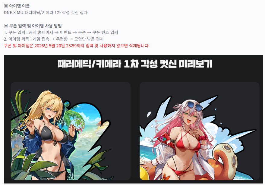 공지 [상시이벤트] 12월 묻고답하기 이벤트 안내 (11월 답변왕 발표) (10) 던전앤파이터 2025.12.11 2,095 0 공지 [수상자 발표] [월드보스] 정보/공략 작성 이벤트 수상자 안내 던전앤파이터 2025.12.04 2,950 0 공지 [이벤트] [디레지에] 레이드 정보/공략 작성 이벤트 던전앤파이터 2025.11.26 7,071 0 공지 2025 던파페스티벌 20th Anniversary 발표 요약 던전앤파이터 2025.11.22 82,301 22 공지 장비 / 플레이 / 뉴비 정보 모음 (219) 던전앤파이터 2025.04.24 999,999+ 115 공지 던전 공략 모음 (디레지에 레이드) (176) 던전앤파이터 2025.11.26 999,999+ 138 공지 전직 별 가이드 모음 (25/11/24 갱신) (745) 던전앤파이터 2025.11.24 999,999+ 389 수다 [공통] 짜잔 (5) 세라장 02:26 108 0 토론 [공통] 20주년 선물 이벤트 종말의 계시 브루클린 02:20 105 1 질문 [공통] 버서커 3태초 풀에픽 기준 각몰vs페어리vs발키리ㅠㅠ (2) 전설의검 01:58 116 0 팁 [공통] [디레지에] 디레지에 핵심 보상,업그레이드소요시간 등 요약정리 (19) 뚜룹이헤카테 01:48 9,123 16 수다 [공통] [모집] 븜다닥 & 븜다다닥 길드에서 길드원 모집합니다. <개꿀잼 오픈톡 맛보기 공개> (498) 싑고수 01:43 280,047 26 수다 [공통] [길드원모집] 우리는 편안한 친목 길드 소금빵입니다!! 함께 게임해용! #친목 #디코 #소통해용 #레이드 #종겜 (3) 말차섬mk살 01:26 13,149 8 질문 [공통] 액트퀘 오류 났는데 해결 방법 아시는 분 있나요 (3) 바마보도 01:17 97 0 질문 [공통] 검제 태별광검+칠흑셋 효율이 안좋나요? (4) 고운말_56532 01:14 131 0 수다 [패러메딕] 패러메딕 키메라 1차 각성 컷신 쿠폰 팝니다 (1) 태기 01:05 104 0 질문 [공통] 삭제한 아이디 복구하려하는데 문제가... (4) 물렁물렁 00:39 149 0 수다 [공통] ♥ [배고파] 에서 던짱 신입 세달만에 대 모 집 중♥ 디레지에 같이 가요! (43) 빛 00:20 41,036 9 수다 [공통] 장비 도감 필요재료 살벌하네 (6) 수녀님 00:05 239 0 수다 [공통] 떠오르는 신인 길드 하와왕&븜니찌와 길드원 모집중! [디레지에 가실 형님들 환영] 디코/카톡/톡방 ㅇ 지금 가입!! (3) 븜 2025.12.16 29,219 2 수다 [공통] ■하와왕&븜니찌와■길원모집! / 나무위키 공식인증길드 TOP20클리어 / 디레지에 길공보유 / 본섭에서함께할 랭커대환영 ! (49) 양초된다실시 2025.12.16 805,652 23 수다 [공통] 각종 무기형상 형상 팝니다 (55) 혈꽃잎 2025.12.16 66,487 4 수다 [공통] 30억 골드 벌어보기 도전 (19) 뚱냥 2025.12.16 1,267 2 질문 [남스핏파이어] 남스핏 던담 기준으로... (3) 참치주먹 2025.12.16 160 1 팁 [소드마스터] 중천 '도' 소드마스터 공략과 캔슬 가이드! (움짤다수) (2025.12.16 갱신) (139) 유키노 2025.12.16 98,795 40 수다 [공통] 던파를 제대로 실행하지 못한다면 이 글을 보세요. 스칼렛린치 2025.12.16 145 1 수다 [여스트라이커] 디레지에 1주차 미클 당사자 입니다.(고객센터 추가 문의 답변 첨부) (19) 미츠하 2025.12.16 1,045 11