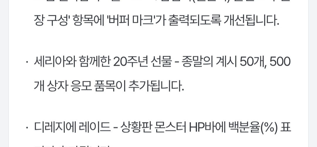 공지 [상시이벤트] 12월 묻고답하기 이벤트 안내 (11월 답변왕 발표) (10) 던전앤파이터 2025.12.11 2,263 0 공지 [수상자 발표] [월드보스] 정보/공략 작성 이벤트 수상자 안내 던전앤파이터 2025.12.04 3,042 0 공지 [이벤트] [디레지에] 레이드 정보/공략 작성 이벤트 던전앤파이터 2025.11.26 7,167 0 공지 2025 던파페스티벌 20th Anniversary 발표 요약 던전앤파이터 2025.11.22 82,431 22 공지 장비 / 플레이 / 뉴비 정보 모음 (219) 던전앤파이터 2025.04.24 999,999+ 115 공지 던전 공략 모음 (디레지에 레이드) (176) 던전앤파이터 2025.11.26 999,999+ 138 공지 전직 별 가이드 모음 (25/11/24 갱신) (745) 던전앤파이터 2025.11.24 999,999+ 389 수다 [공통] [모집] 븜다닥 & 븜다다닥 길드에서 길드원 모집합니다. <개꿀잼 오픈톡 맛보기 공개> (499) 싑고수 21:11 280,194 26 수다 [공통] 연합길드 멜로디에서 신규 길드원 모집중! (1) 너무강한배메 21:07 3,207 1 수다 [공통] "길드원이 길마를 납치해서 코스프레 시키는 길드가 있다고?ㅋㅋ 그런곳이 어딨ㅇ" ◀ 바른먹거리 ▶ 길드원 모집중! ★=★ (240) Xenevie 20:57 62,539 21 수다 [공통] 아 3일연속 버거는 좀 그랬다.. (6) 엘마키울랭 20:47 106 0 수다 [공통] ★밤나비★ 길드원 모집중// 디레 이내 길공o 단톡디코o 함께하실분을 모십니다. (7) 창단주 20:38 1,650 2 수다 [공통] [설렘주의보] 길드원 모집중입니다~ (1) 흔들여신 20:20 242 0 수다 [공통] 20주년 굿즈 부들부들 나이트 타올 이랑 아크릴액자 필요한사람! (17) 十뮤즈十 19:46 626 0 수다 [공통] 스노우월드 3위완화.. (5) 탄야 19:37 248 0 수다 [공통] ■ 패키지/골고증폭권/아바타/세라템 최대90% ■ 여러분들의 소중한 시간을 사드립니다 ■ 한포상점 19:32 104 0 수다 [공통] [한마음길드] 던린이/던짱/복귀자/수다/정보공유환영! 단란한소규모길드입니다 :) (23) 유우후! 19:17 5,801 3 수다 [공통] 아.. 11월에도 그러더만 (2) 응원아포 18:48 347 0 수다 [공통] 스태미너 포션 텍스틐ㅋㅋ (3) 최외의넨마 18:27 262 2 수다 [공통] 코인으로 계시 받는거 이게 다임? (5) Pacifist 18:25 347 0 수다 [공통] ■생로랑■길드원 모집!_[실시간 문의가능]_디레지에 헤딩 길공운영_대형길드_뉴비,복귀대환영_디레지에ON (10) 콥듀란 18:11 62,683 3 수다 [키메라] DNF X MU 패러메딕/키메라 1차 각성 컷신 상자 쿠폰 번호 판매합니다 망고_비질 18:09 122 0 수다 [공통] [공통] [모집] 속보 : 던파 길드 [소중], 신입 모집 개시 ㄷㄷ (37) 먹츄 17:56 14,237 5 수다 [공통] 쿨감 상한 70%에 캐릭 고유 패시브는 빼줘라 인간적으로 (4) 神의恩寵 17:55 231 0 수다 [공통] 헬을 멈추는 기준이 어떻게 되시나요? (11) 월클드랜 17:55 319 0 수다 [공통] ■하와왕&븜니찌와■길원모집! / 나무위키 공식인증길드 TOP20클리어 / 디레지에 길공보유 / 본섭에서함께할 랭커대환영 ! (49) 양초된다실시 17:42 805,693 23 수다 [공통] 너희 게임 못하자나^^ (6) 홍차와사탕 17:11 422 0