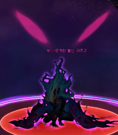 대부분의 패턴은 보라색 원을 몸 주변에 두르는 카운터 패턴이니 보스 근처에서 딜 누적을 하되, 머리 위에 붉은 눈 2개가 뜨면 줄넘기 패턴이니 해당 타이밍에만 보스에서 멀어져 점프로 충격파를 피해주세요.