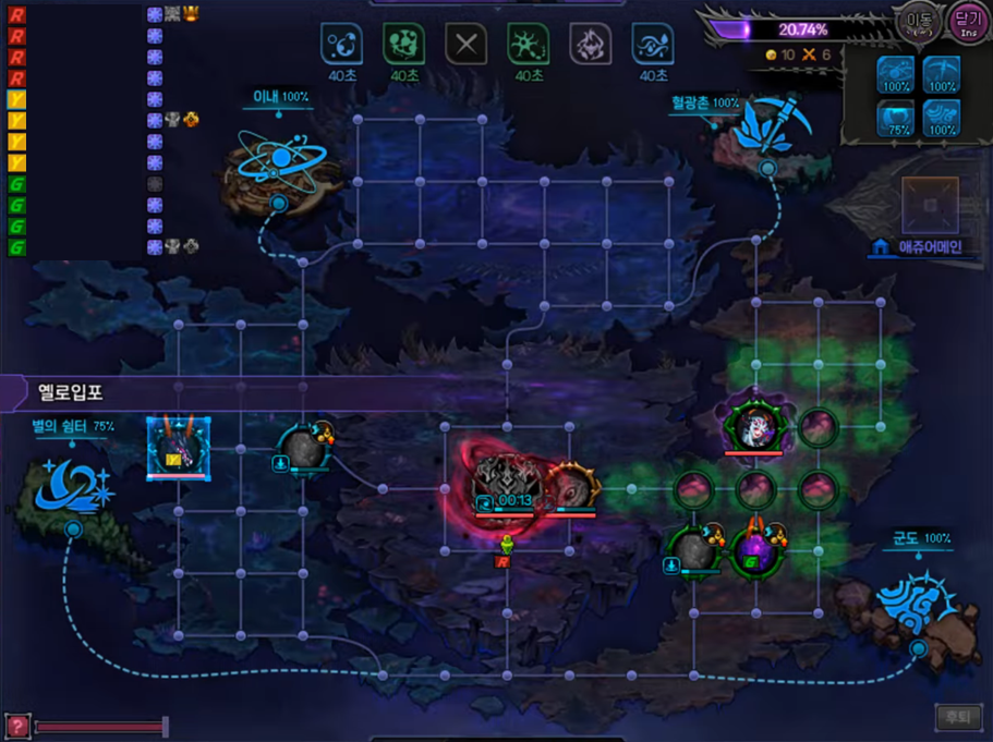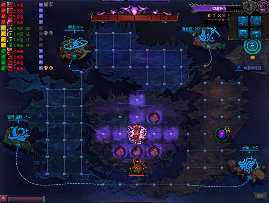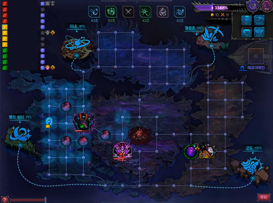 저스펙 미숙 공대의 경우 1페이즈에서 섬의 체력을 50% 이상, 코인을 10개 이상 가져가야 안정적입니다.