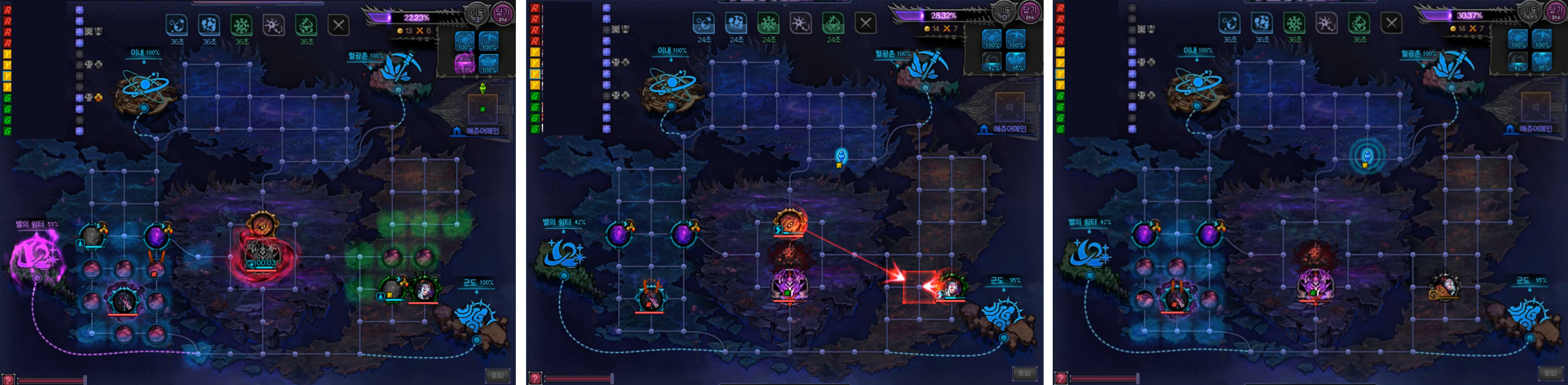씨앗을 잡고 해당 위치를 벗어난다면 붉은색 화살표로 표시가 되며, 그 자리에 사념과 호스디그가 격돌상태가 됩니다.