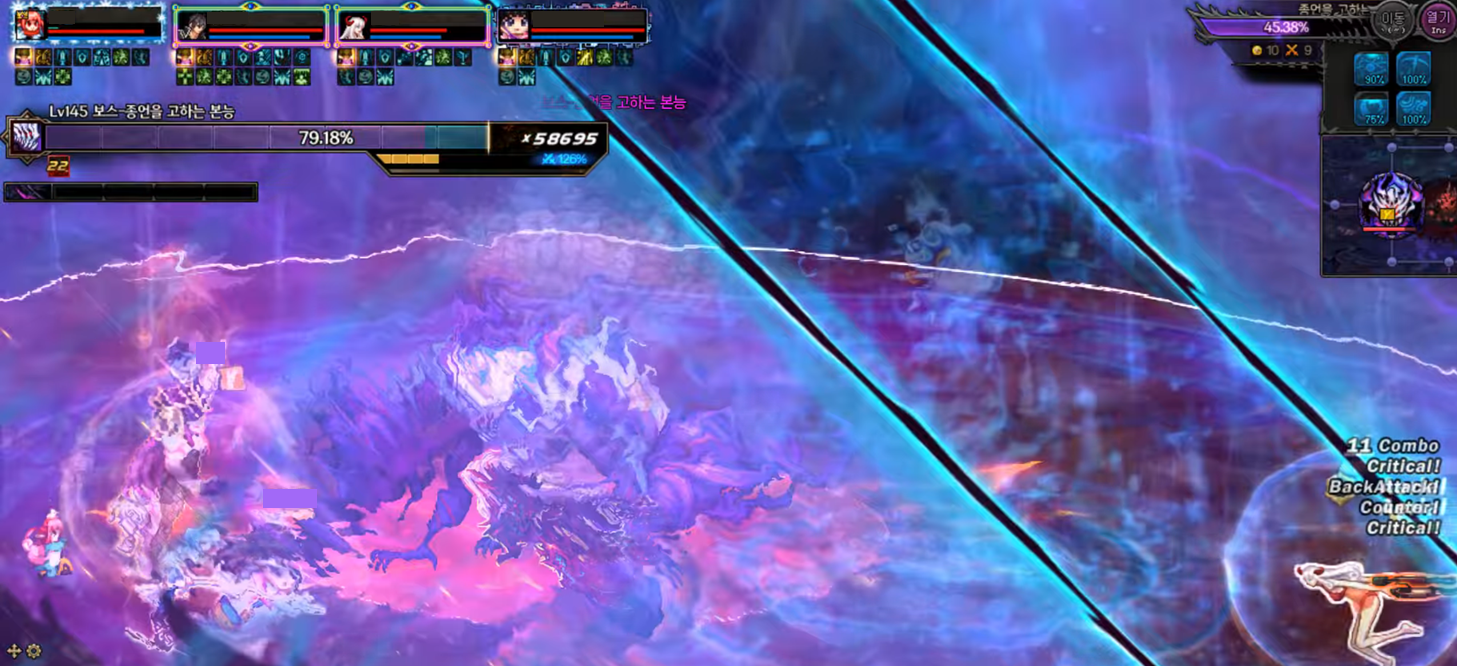 마지막 사념은 2격돌 30%증뎀으로 패턴포로 한 방에 마무리해도 되고, 하던대로 씨앗 교대를 통해 마무리를 해도 됩니다.