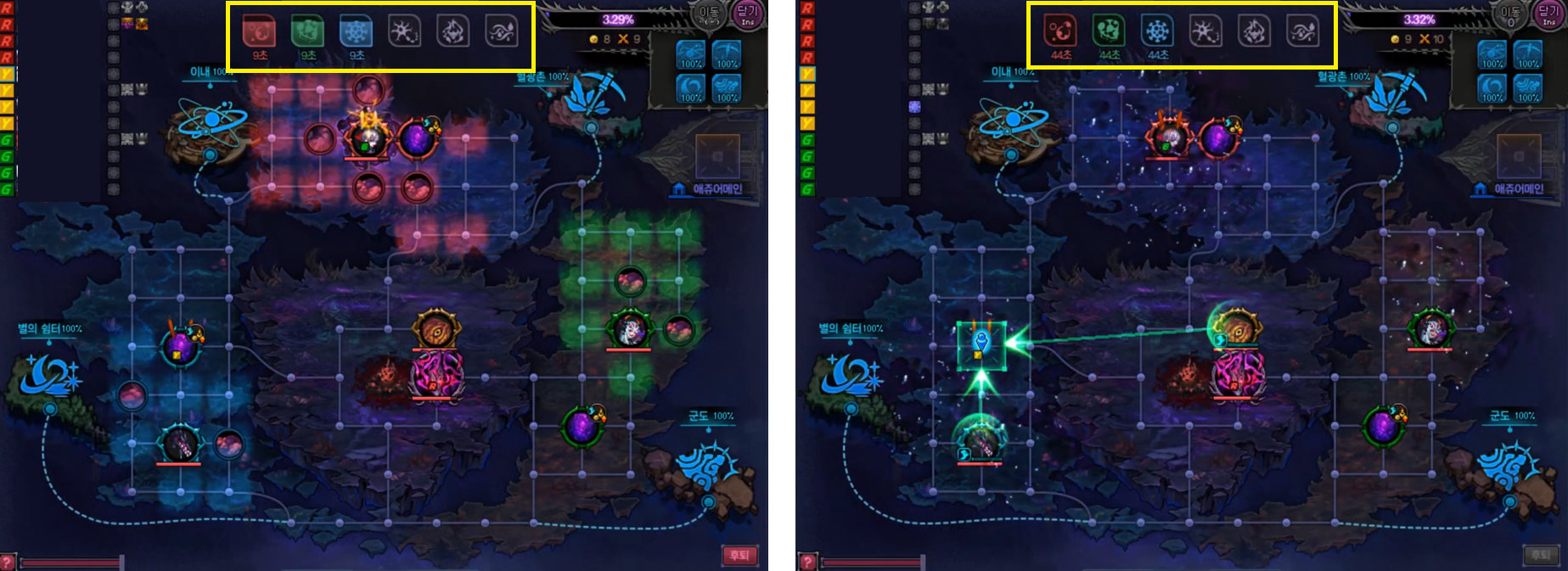 또, 사진에서 보듯 씨앗을 처지하는 즉시 맵에 모든 역병지대가 제거되기 때문에, 씨앗을 통해 역병지대를 적절하게 관리하는것이 매우 중요합니다.