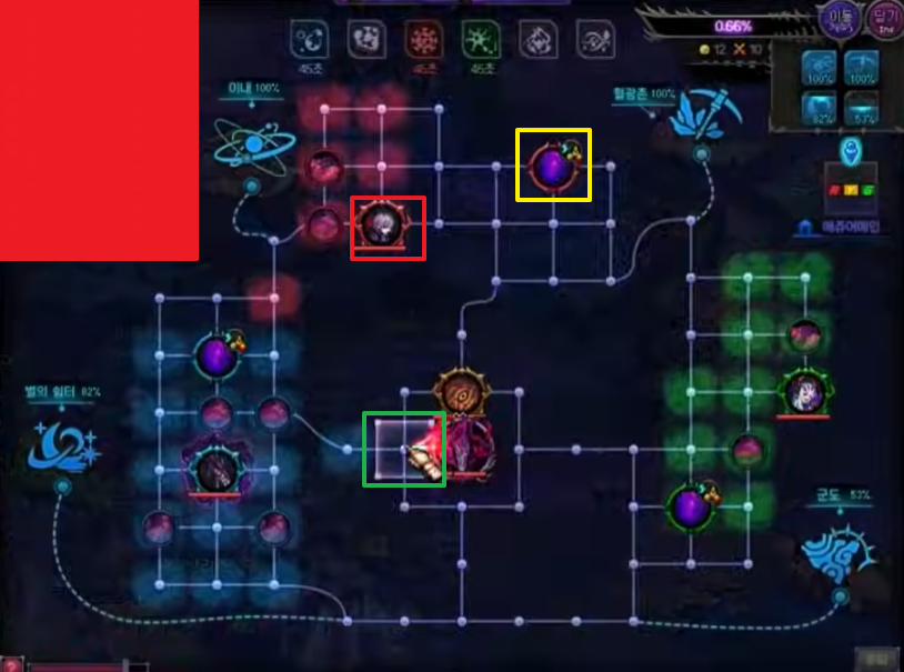 -. 레드 : 12시 사념 -> 5시 씨앗잡고 격돌