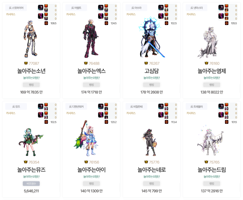 발굴한 캐릭터까지 돌리고 나니, 지금 돌리는 캐릭터도 많은데