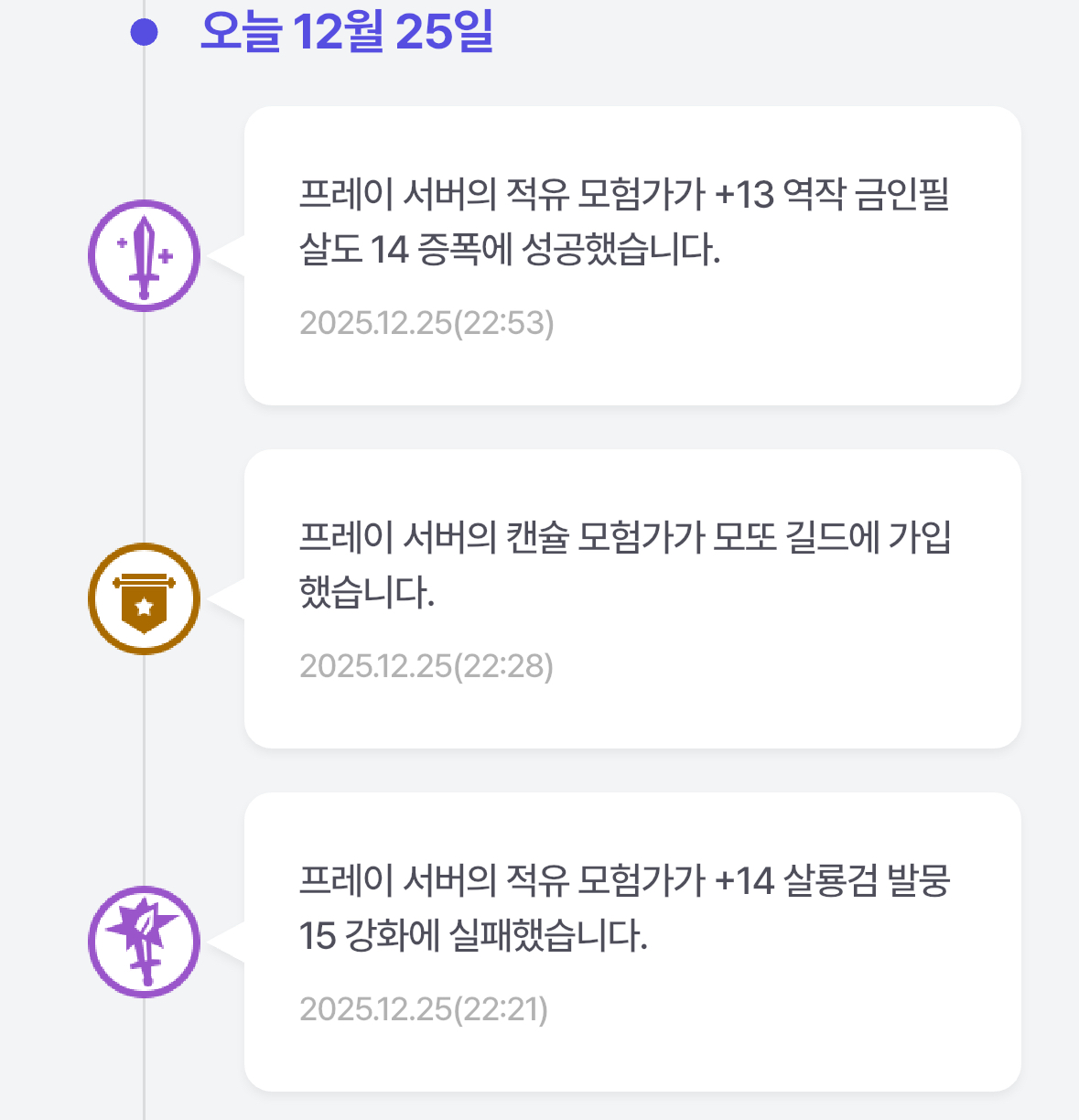 공지 [상시이벤트] 12월 묻고답하기 이벤트 안내 (11월 답변왕 발표) (10) 던전앤파이터 2025.12.11 3,435 0 공지 [수상자 발표] [월드보스] 정보/공략 작성 이벤트 수상자 안내 던전앤파이터 2025.12.04 4,052 0 공지 [이벤트] [디레지에] 레이드 정보/공략 작성 이벤트 던전앤파이터 2025.11.26 8,366 1 공지 2025 던파페스티벌 20th Anniversary 발표 요약 던전앤파이터 2025.11.22 208,315 23 공지 장비 / 플레이 / 뉴비 정보 모음 (219) 던전앤파이터 2025.04.24 999,999+ 115 공지 던전 공략 모음 (디레지에 레이드) (177) 던전앤파이터 2025.11.26 999,999+ 139 공지 전직 별 가이드 모음 (25/12/24 갱신) (745) 던전앤파이터 2025.12.24 999,999+ 391 수다 [공통] 낙서 (1) 노엘이 01:15 80 0 수다 [공통] 바니바니 키메라, 패러메딕, E타입 팝니다! 대암흑천 01:04 63 0 수다 [공통] 바니바니 키메라+패러메딕세트 6000만골드 팝니다~ 원소혁명 01:01 59 0 수다 [공통] [오픈카톡방] 뉴비&던붕이 필수 오픈톡방! 초쿠의 던전앤파이터 수다&정보방 정상 영업 중! (32) 초코쿠키핌 00:56 92,525 8 수다 [공통] [루바토-레가토-테누토-바이엘]연합길드[멜로디]에서 길드원 모집중!!디레딜벞구직 100%!나벨부터 디레까지 멜로디에서 레쓰븜! (22) 시어하트어택 00:33 19,480 2 수다 [공통] [설렘주의보] 길드원 모집중입니다~ (1) 흔들여신 00:21 731 1 수다 [공통] 박종민 디렉터님을 공론화 합니다 (3) Aar아랑 00:17 207 0 질문 [요원] 요원 장비방향성 및 캐릭터 육성 방향성 (3) 총쏘아 00:15 104 0 수다 [공통] 이제 봤는데 비질 피통 뭐임...? 神의恩寵 2025.12.25 251 0 질문 [엘레멘탈 마스터] 보통 다캐릭하시면 부캐릭들은 어떻게 관리하시나요 ? (9) 자귀나무 2025.12.25 206 0 질문 [공통] 무기고에서 빼내기? (3) 홍영도 2025.12.25 137 0 수다 [공통] 크리스마스 선물!! (2) 멜아 2025.12.25 227 0 수다 [공통] [모집] 매우 큰 속보;;;;;;;;;;;;;; <개꿀잼 오픈톡 맛보기 공개> (515) 싑고수 2025.12.25 282,364 26 질문 [인챈트리스] 구인할때 인첸버프력은 4인기준인거죠? (3) 심검유혼 2025.12.25 225 0 수다 [공통] [한마음길드] 던린이/던짱/복귀자/수다/정보공유환영! 단란한소규모길드입니다 :) (23) 유우후! 2025.12.25 6,053 3 수다 [공통] 나는 한다 븜미 길드원 모집 / ■하와왕&븜니찌와■ / 유일장비 오너길마 보유중 ★디레클 길공 운영중★ 로리구리 2025.12.25 690 0 수다 [여스트라이커] 크리스마스는 던파와함께 (3) 권버스터 2025.12.25 222 0 수다 [공통] ■생로랑■길드원 모집!_[중천창설 전체2위]_디레지에 헤딩 길공운영_대형길드_뉴비,복귀대환영_디레지에ON (10) 콥듀란 2025.12.25 63,158 3 수다 [공통] 던파 패러메딕 바니바니 컷신 팝니다. (4) 眞ㆍBlade 2025.12.25 669 0 수다 [공통] 미니겜 방송븝 미션 점수는 도대체 어떤 걸 기점으로 주는 걸까? (2) Schusswaffe 2025.12.25 140 0