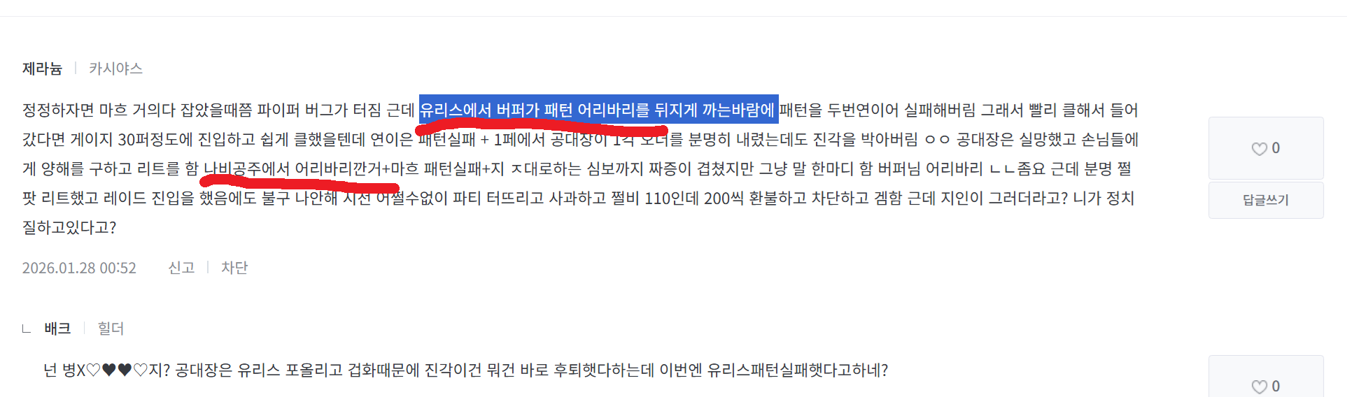평소에 공대장잡고 손님입장/쩔러들 난입순서까지 다 짚어줌. 사진하나없이 헛소리하는거 역겹다 라늄아.