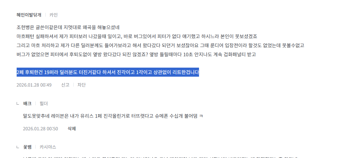 그리고 누구 부계정도아닌데 당사자가 접속종료한거확인하고 허위사실유포당한다고 새벽내내