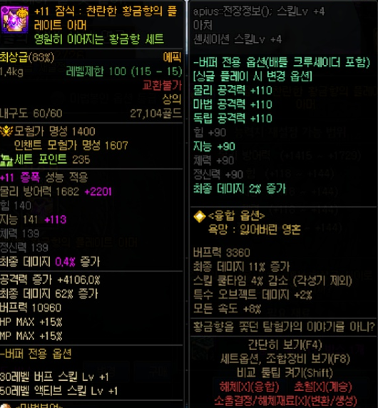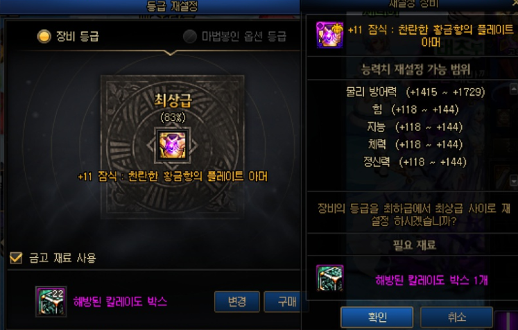 제 장비는 지능 141, 극옵보다 지능 3이 모자르네요.