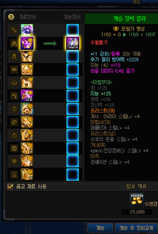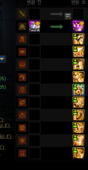 버퍼 전용 고유 장비 선택 상자로 위의 예시인 '상의'를 고릅니다.