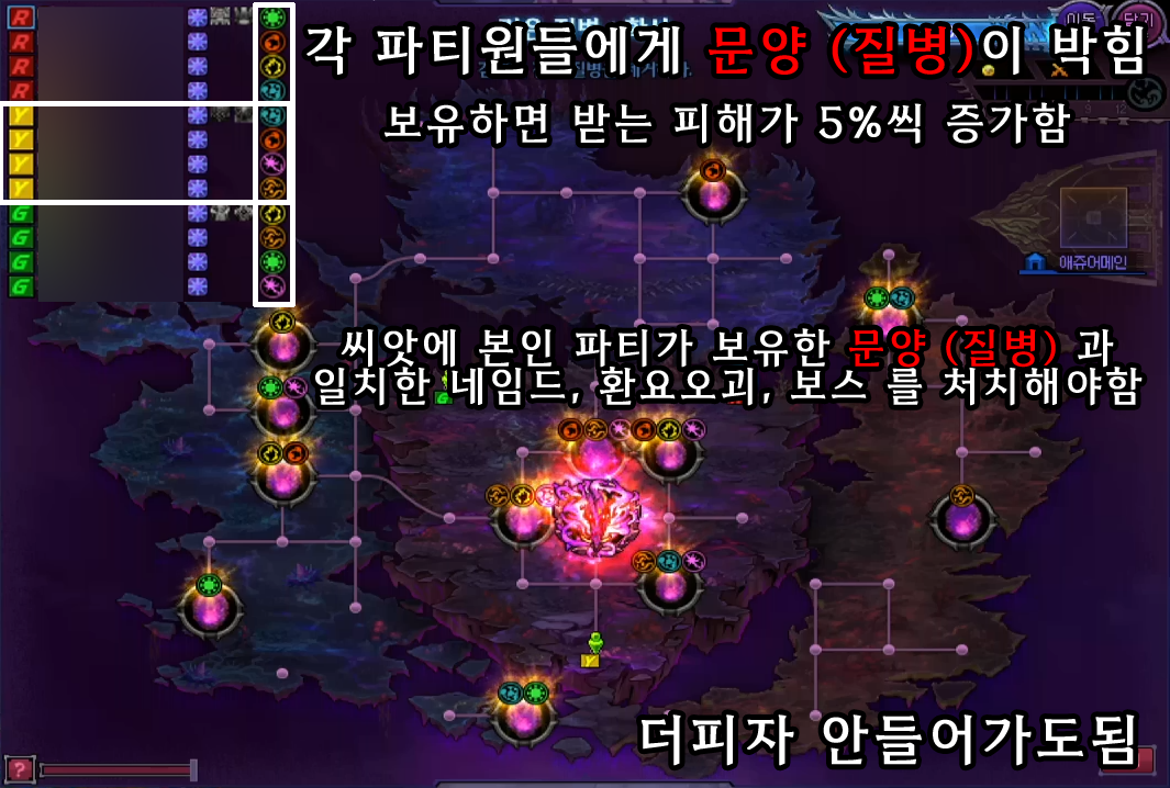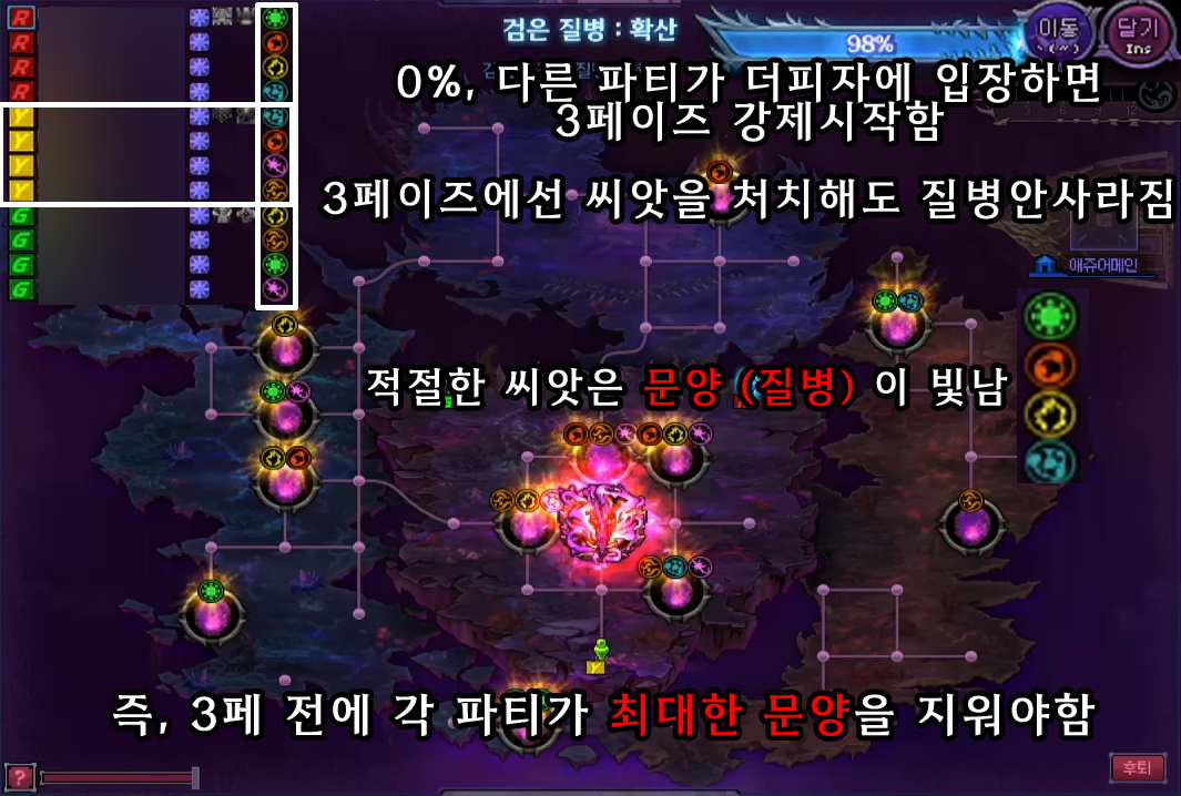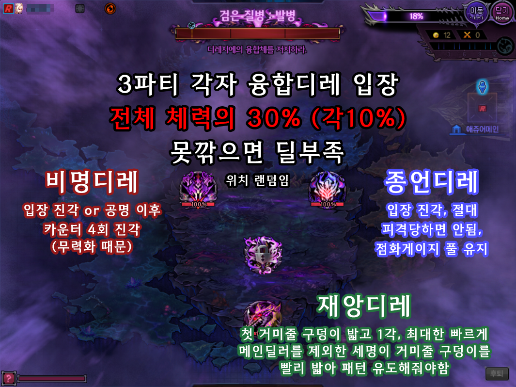 3문양 씨앗 의 경우, 패턴 파훼에 역병 반전이 반드시 최소 한명을 요구하기 때문에 모든 패턴에 대한 숙달이 필수입니다.