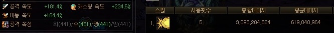 명/수 듀얼 속성으로 타격했을때 평균 데미지는 619,040,964