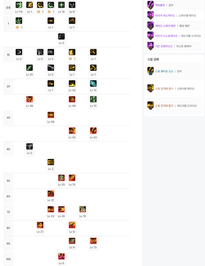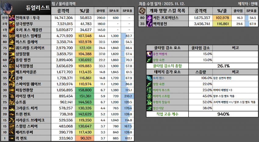 위 스킬 트리는 11월 5일 스킬 개선 이후 초보자 기준으로 제작된 스킬 트리입니다.