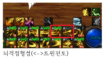 나중에 기본기를 본인이 더 소화할 수 있다 싶으면 뇌격점혈섬 스킬 포인트를 내리고 트윈 펀토를 채택해서 사용하시면 됩니다.