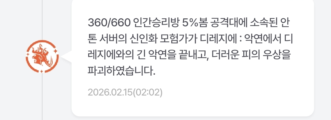 공지 [상시이벤트] 2월 묻고답하기 이벤트 안내 (1월 답변왕 발표) 던전앤파이터 2026.02.12 1,768 0 공지 [공통] 내 전직 가이드 작성/갱신 이벤트 (2/12 ~ 2/26) (7) 던전앤파이터 2026.02.12 2,308 2 공지 2025 던파페스티벌 20th Anniversary 발표 요약 던전앤파이터 2025.11.22 220,479 25 공지 장비 / 플레이 / 뉴비 정보 모음 (222) 던전앤파이터 2025.04.24 999,999+ 117 공지 던전 공략 모음 (디레지에 레이드) (182) 던전앤파이터 2025.11.26 999,999+ 142 공지 전직 별 가이드 모음 (25/02/13 갱신) (755) 던전앤파이터 2026.02.13 999,999+ 398 수다 [공통] ■하와왕&븜니찌와■길원모집!/ "3유일장비 오너길마" +TOP20 클리어+ [하드 디레지에 배율퍼클 이력길드] 유일랭커 보유중 (56) 양초된다실시 04:45 812,025 25 수다 [남레인저] 남거너 3차 레압 노블레스(블랙)상의 범의 04:38 572 0 수다 [소드마스터] 검사힉이 / 칠흑도소마 (2) 힉이 03:54 76 0 수다 [뱅가드] 디거시 풀개방 염화 03:12 168 0 팁 [뮤즈] 뮤즈 가이드 0215 (123) 에반쩰리스트 03:04 151,905 59 수다 [공통] 538억딜러로 이내3인쩔 터뜨린뒤 지적한사람 쩔사기쳤다고 날조하는 '카시야스 - 제라늄' (31) 배크 02:51 3,914 4 수다 [공통] 아르카나 해방 400회 정신나가겠네 (1) 메디컬오피서 02:35 208 0 질문 [공통] 악연 12희망 확정으로 못하는상황도 많죠? (1) 신종민종신 02:33 194 0 수다 [공통] 오늘 헤딩 악연 같이 깨드리신분들에게 너무 감사합니다!!!! 평범한던린이 02:30 147 0 수다 [공통] 360 / 660 클리어! 신두한 02:30 176 0 수다 [공통] 이번주 이내가 제일 고통스러운 이내였다 기사는칼안써 02:26 195 0 수다 [공통] "찰나"에서 길드원 모집! / 단톡디코o / 디레지에 4캐릭 이상 / 악연 가능자 환영 (2) 엘리시스* 02:14 11,040 3 수다 [공통] 타임라인 버그? 장난감얼음 01:57 149 0 질문 [공통] 돌아온 질문러 (1) 1stBLASTER 01:57 153 0 수다 [공통] 악연10인쩔에 7.8쩔러가 맞는지..? 야생 고혈빨아먹는 공대인거같아서 올려봄 (3) 배크 01:54 375 3 수다 [공통] [길드원 모집] 길드 '별빛정원' 에서 모험가님들을 모집합니다! 뉴비/복귀/현역 모두 대환영 아가방만지기 01:50 679 1 수다 [공통] 왜 디레지에: 악연 레이드는 던파 유저들을 떠나가게 만드는가? (30) 지화자문금복 01:36 2,054 53 팁 [뮤즈] 뮤즈의 간편한 스킬 사이클 최적화 (312) JN_P 01:17 305,184 144 팁 [키메라] [키메라] 연구 결과 공유, 키메라 가이드 0215 (54) 에반쩰리스트 01:14 48,251 25 수다 [공통] 2월 던파 [중간정산] - 계정창고체크 (3) 뚱냥 01:13 347 0