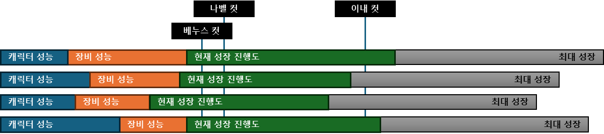 여기서 캐릭터 성능 / 장비 성능의 격차가 벌어집니다.